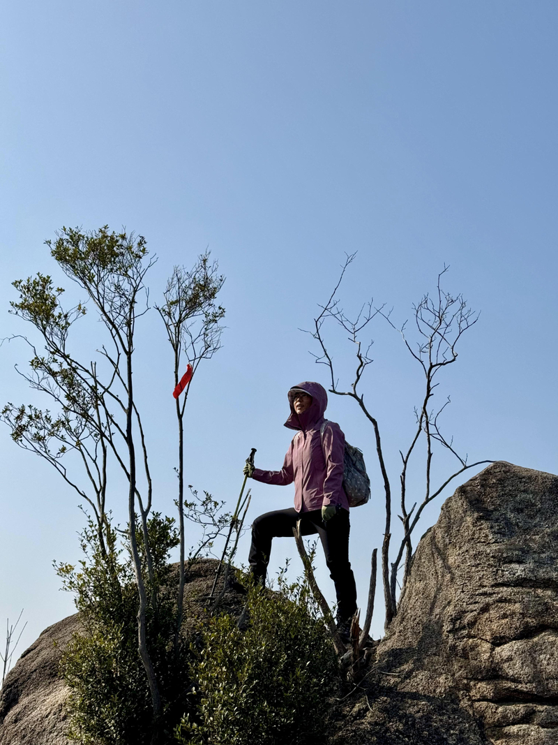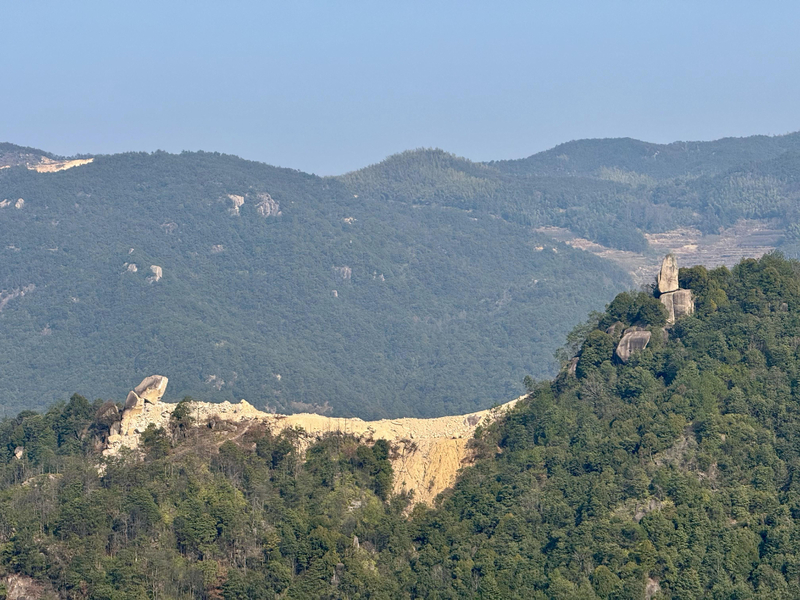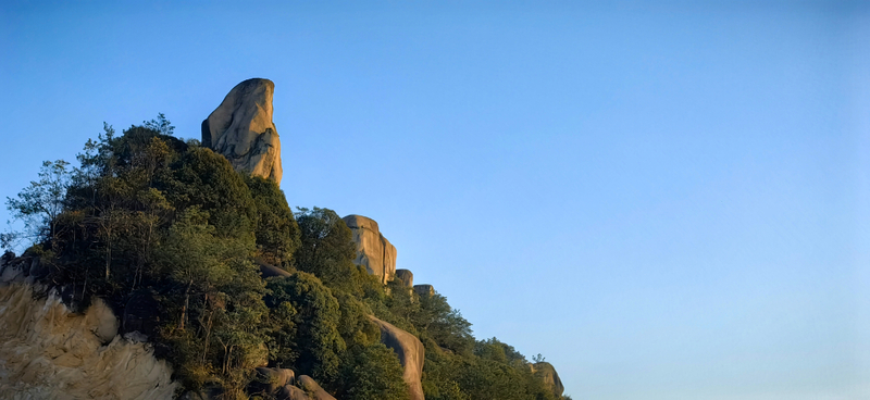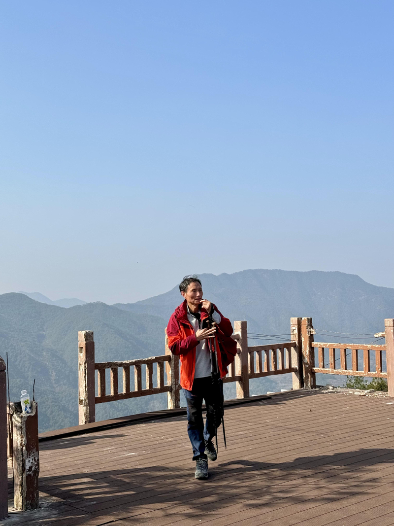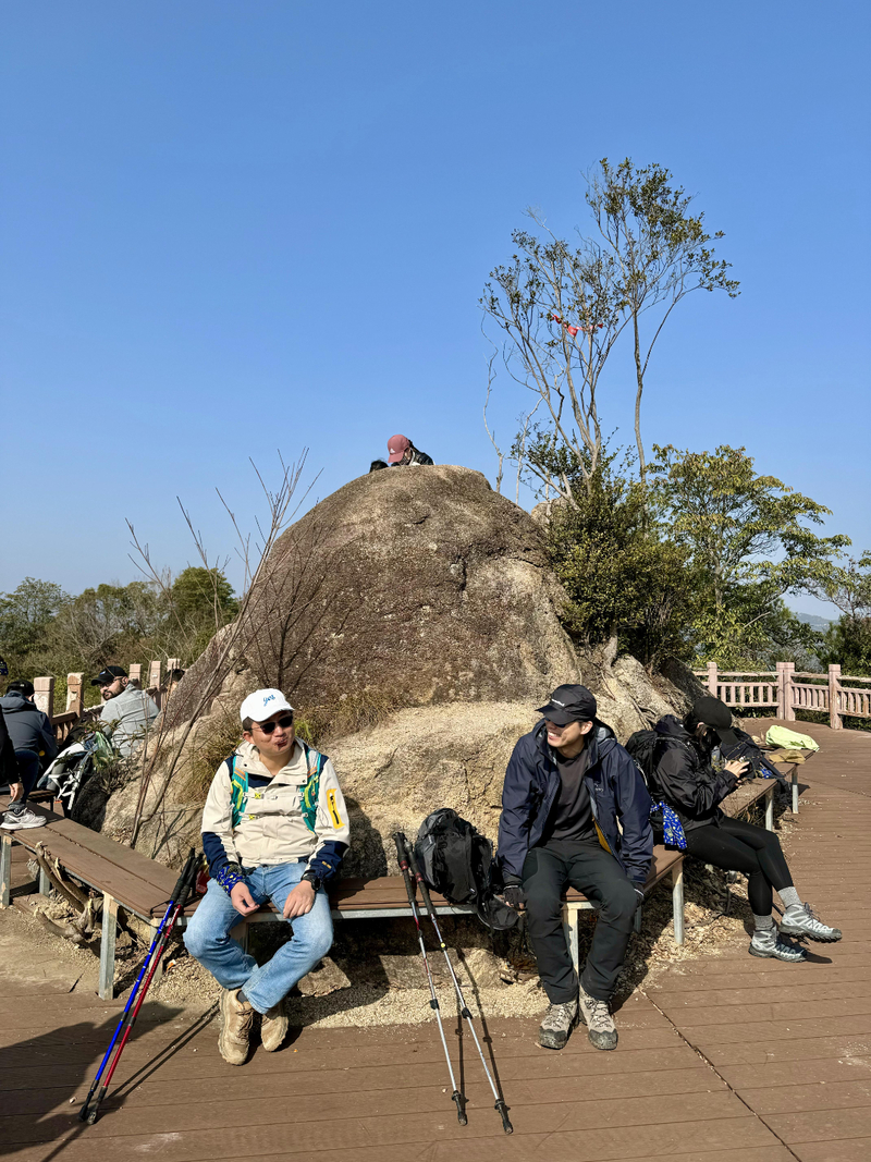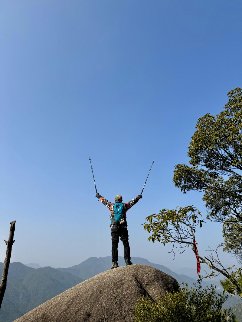 到达徒步起点后,我们先简单做了热身运动,然后出发。徒步起点是走一段骑行道,后是一段400多米近50度的台阶爬升,多少让人望而生怯。但是这段是对体力的考验,可以控制好自己的节奏,有序前进就好,后续继续走山路,大概1个小时40分钟后我们到达观景平台,这里可以看到猴子观海等奇石,同时还有近处的石头可拍照,同时这里可在这吃路餐,补充体力。