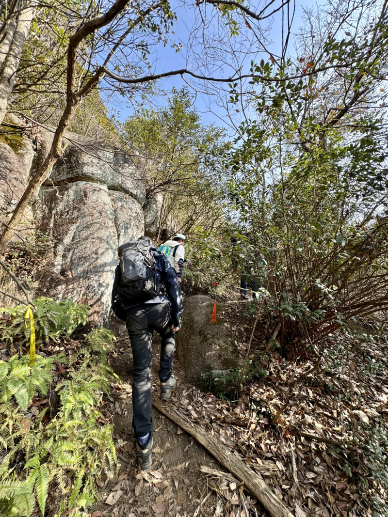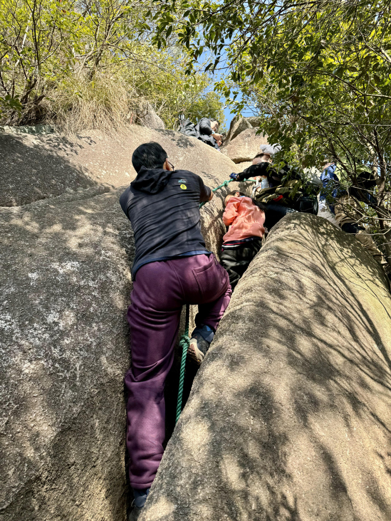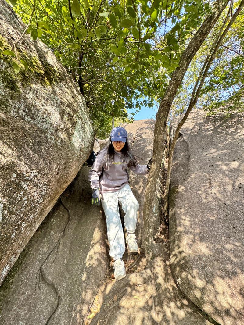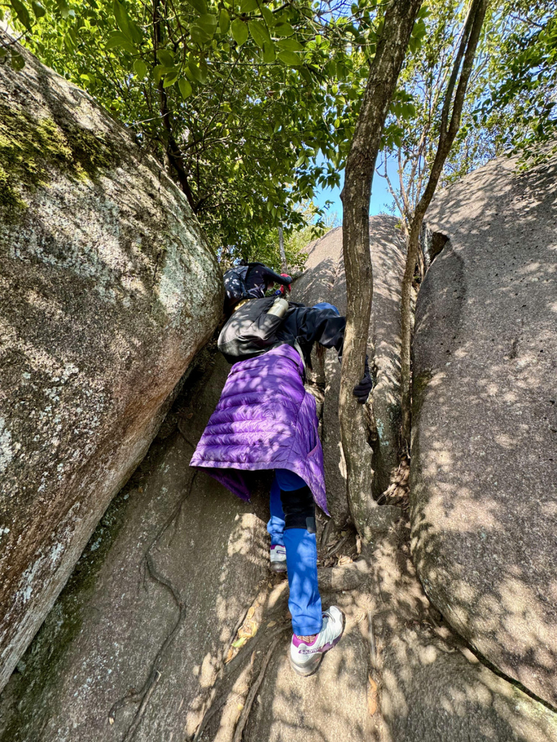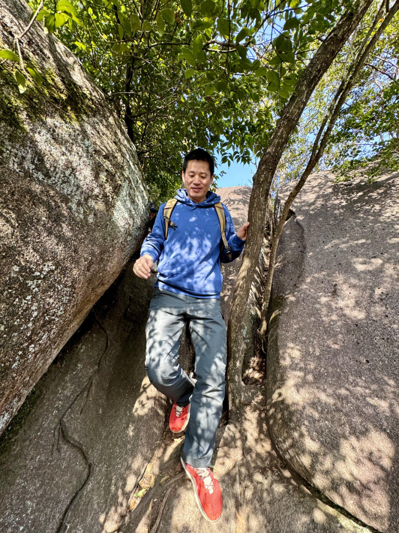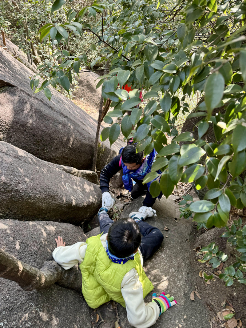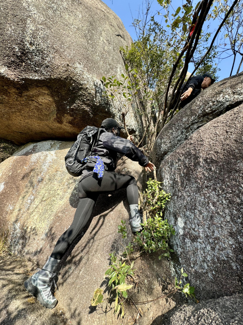 后续开始在山脊、及各种石头中攀爬,上上下下、手脚并用,多了几分刺激和野趣,拍照打卡也不错。