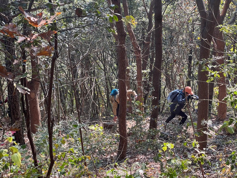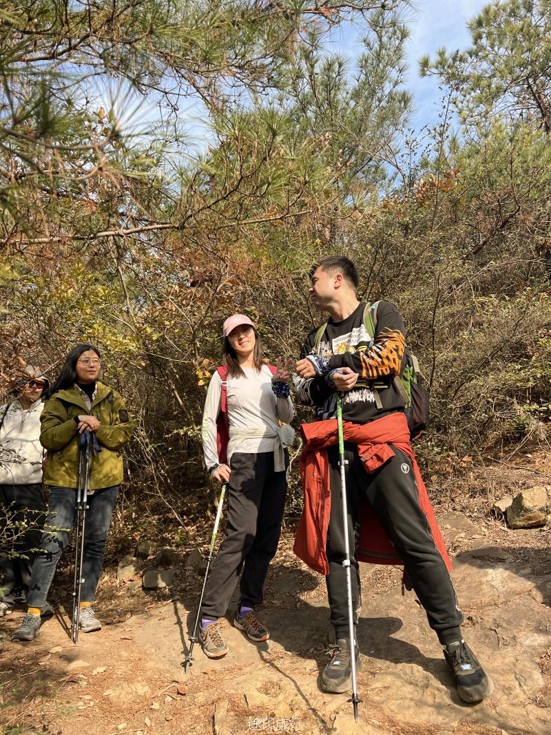 山路崎岖,但每一步都充满了挑战和乐趣。因为秋天时山民砍伐了很多树木,挡住了我们多个隐秘的小路,大家只能艰难的开荒往上切。经历了一段手脚并用的攀爬,终于到达了一段平坦小道。队员们一边喊累,一边直呼今天到这里值了。