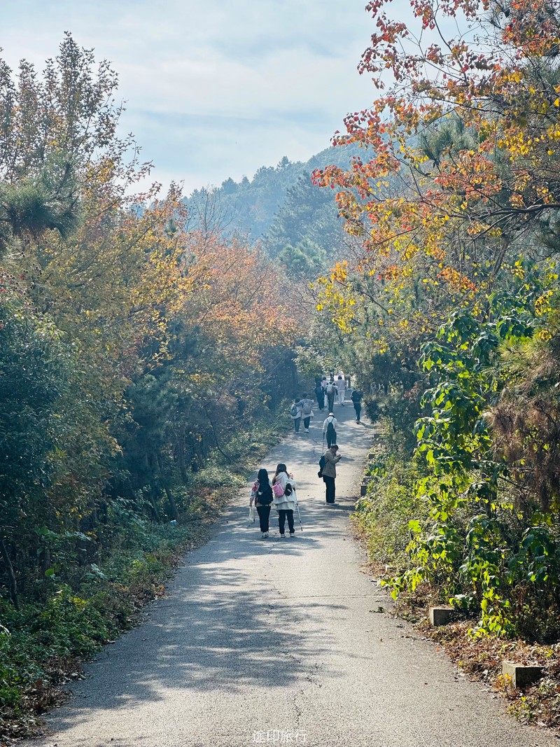 莫厘峰上的红叶与常绿树木相互衬托,形成了一道独特的风景线。山间偶尔有几片落叶飘落,仿佛是大自然在为我们铺就一条通往峰顶的红地毯。我们踏着这条“地毯”,一步步向上攀登,感受着冬日里的那份宁静与美丽,最终达到了