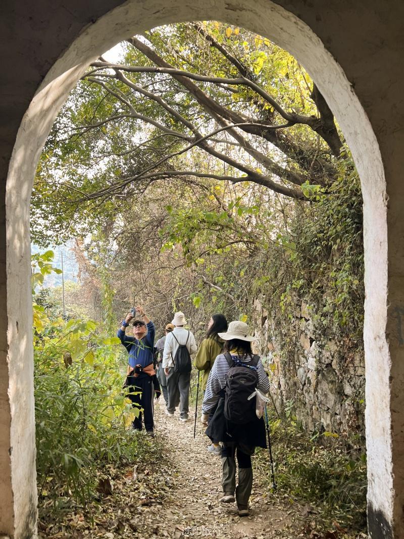 大家伙儿在山上稍作休整,我们还吃了斋面,小伙伴们略感轻松的开始下山。下山后穿越过一大片果园, 又切换到一个静谧的古村落,真的是静悄悄的,一路上一个村人都没有看到。