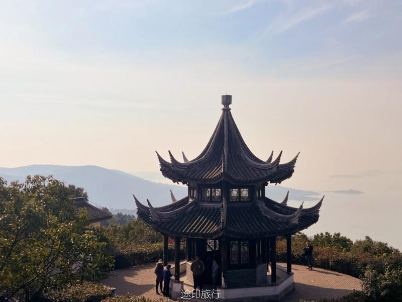 当我们登上山顶时,眼前的景色瞬间让我们忘记了所有的疲惫。八百里太湖尽收眼底,那种壮丽与辽阔,让人心旷神怡。