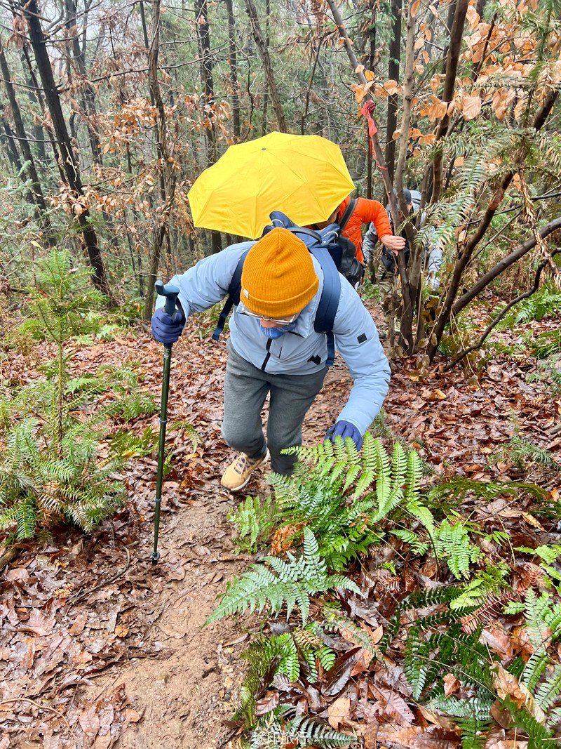 整个徒步过程中,我们欣赏到了茅山独特的自然风光。青翠的山川、蜿蜒的小溪、古老的松柏,构成了一幅幅美不胜收的画面。雨后的空气中弥漫着清新的花草香气,令人陶醉其中。虽然雨水在树叶上留下晶莹的水珠,但这并没有减弱大家的热情,反而增添了一份清新宜人的氛围。经过一段辛苦的爬坡,我们终于达到了旅途的顶点。站在山巅,眺望远处的山水风光,仿佛置身仙境。尽管天空仍然被云雾遮掩,但这一切都让这次徒步显得更加神秘而壮丽。