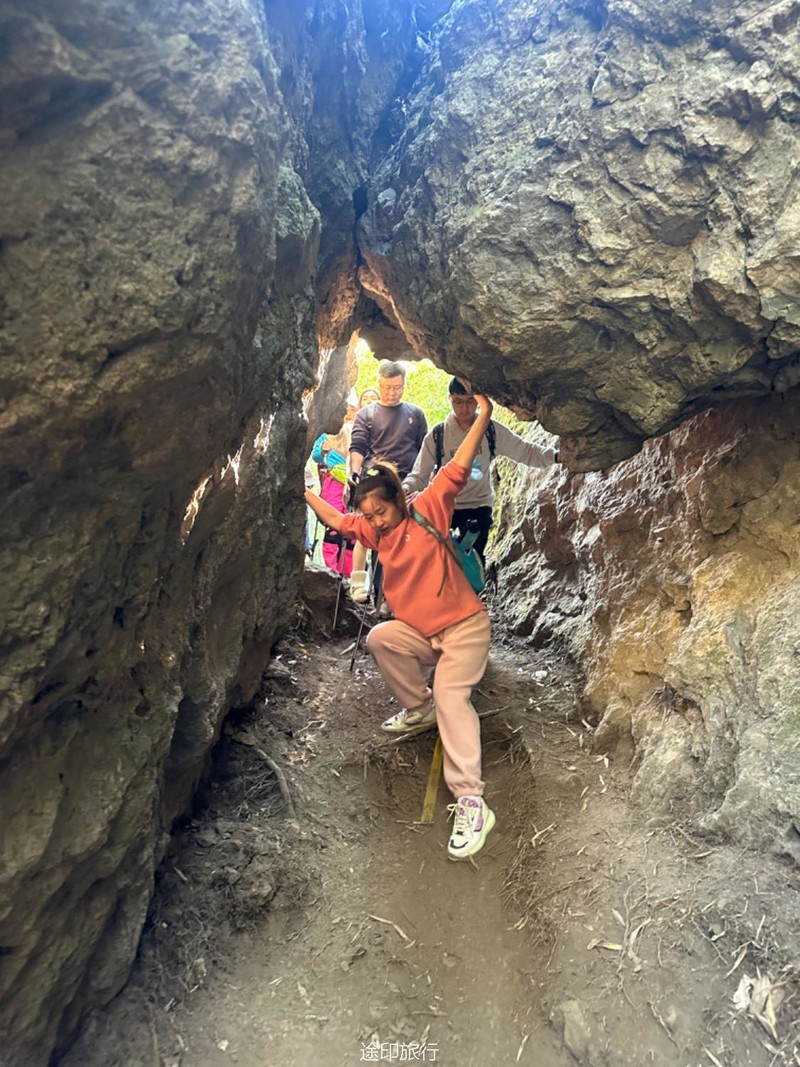 葛岭仙境来过很多次了,这是一条路程短,爬升不大的精品路线。 我们穿过农家的栅栏上山,竹林,到了天然形成的石洞。很快就到了一个山脊处,这里特别开阔。 继续前进,就到了下坡的地方,这里还是很陡的,当然我们为大家准备好了绳子,所以还是很顺利地通过。