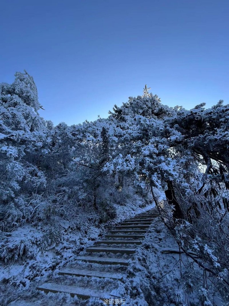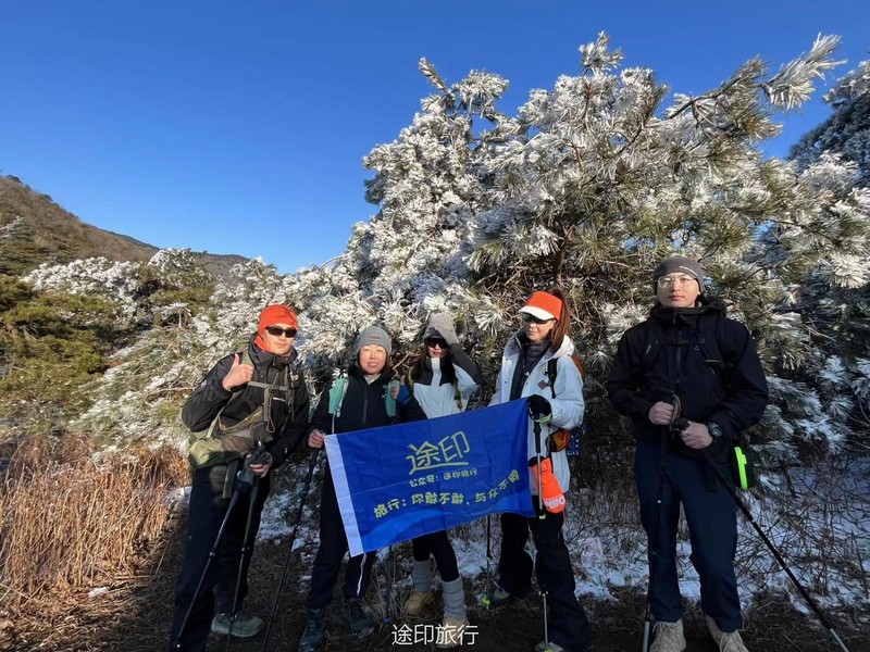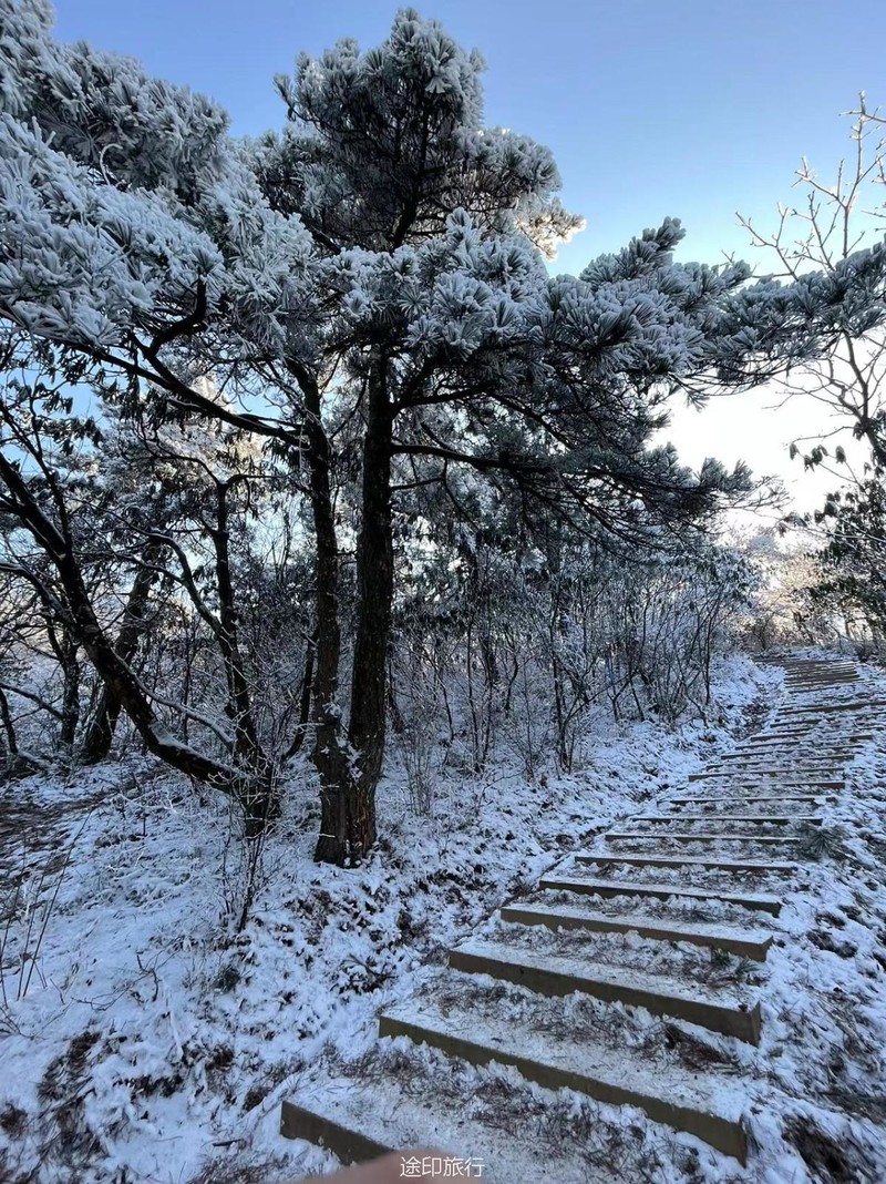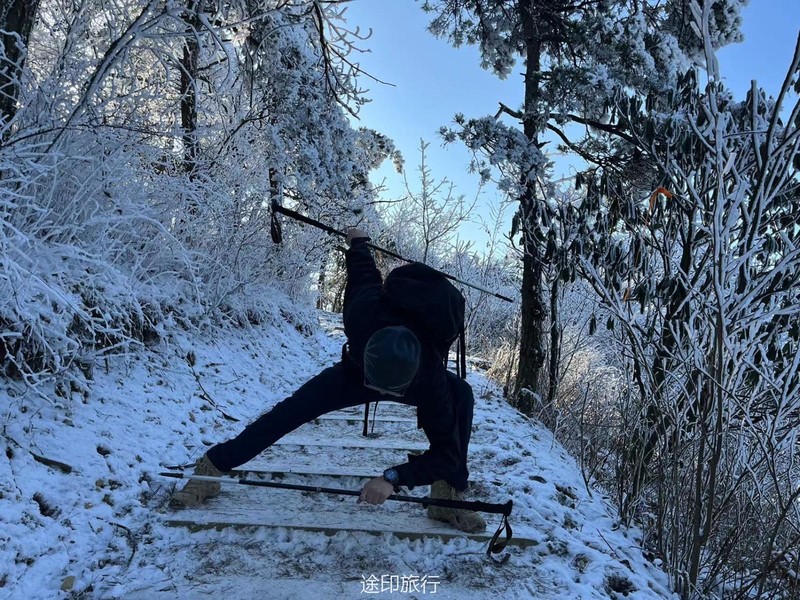 队员们纷纷说道,是不是没有雪了?当天10度的气温让我们感到有些疑惑,我们一路向山而行,从海拔300米一路爬升到1500米,终于遇到了童话世界里的冰雪王国。