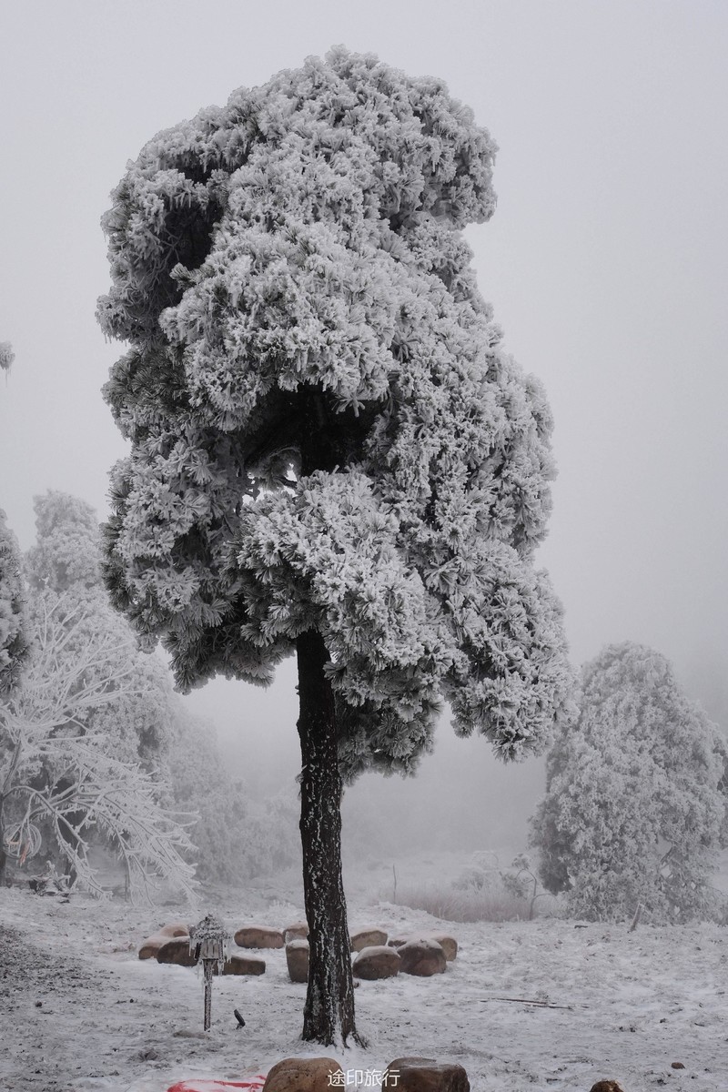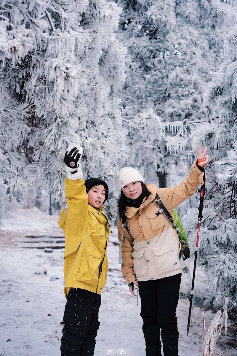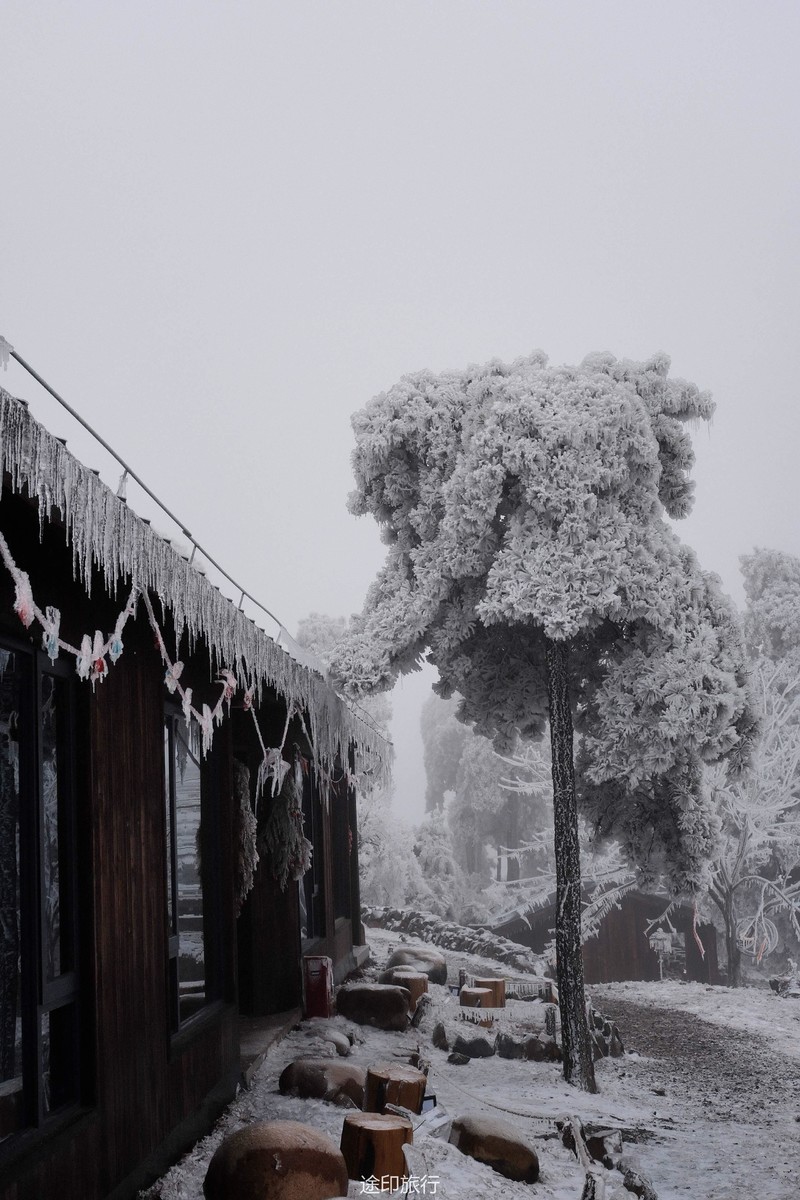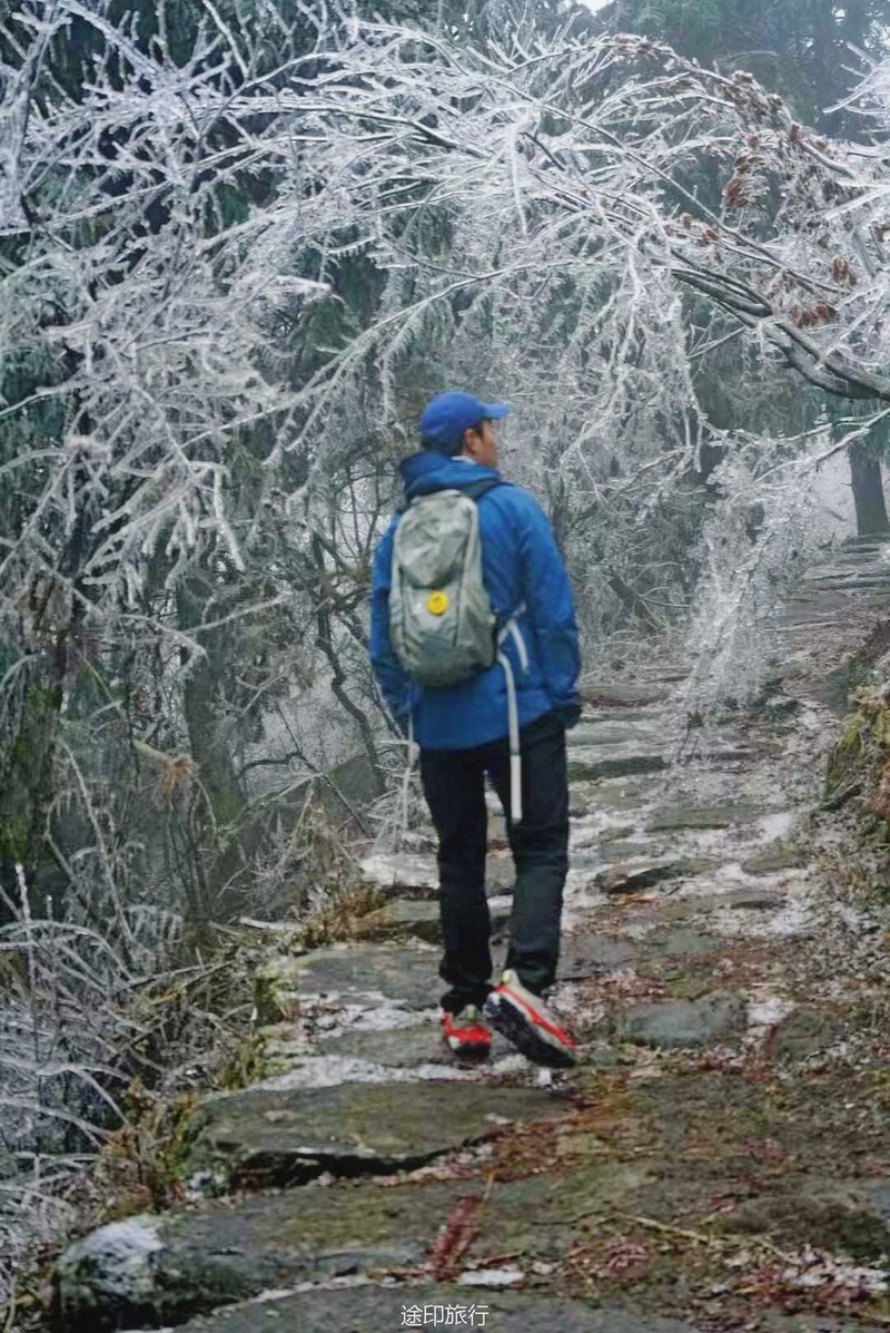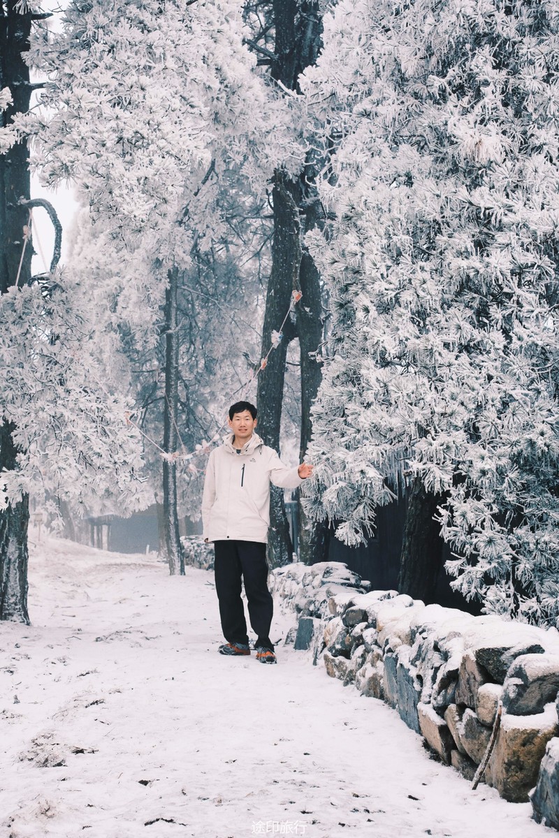 刚开始山下还下着小雨,还当心山上没有雪景