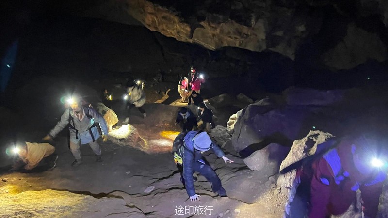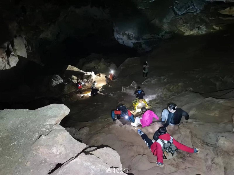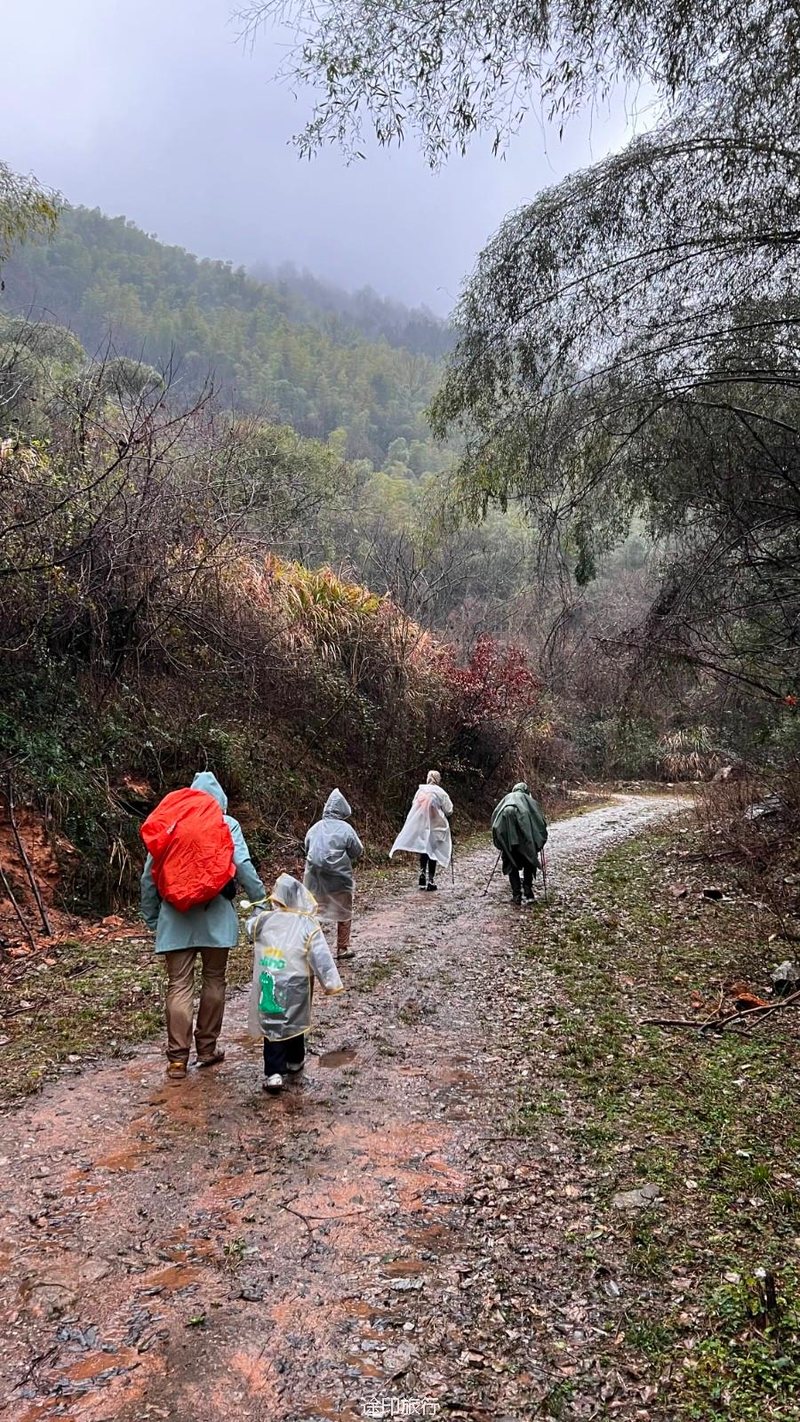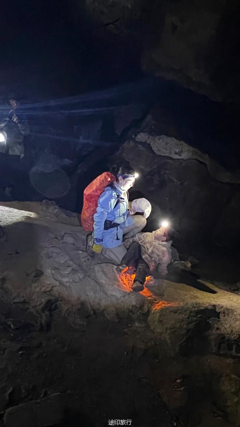 由于当天下起了小雨,抵达山脚,雨雾缭绕,仿佛给整个山林披上了一层轻纱,山路湿滑,每一步都需要小心翼翼,增添了几分探险的刺激感。来到洞口,大家脱掉雨衣,吃着午餐,雨水从洞顶滴落,与洞内的寂静形成鲜明对比,深深感受到大自然的魅力。