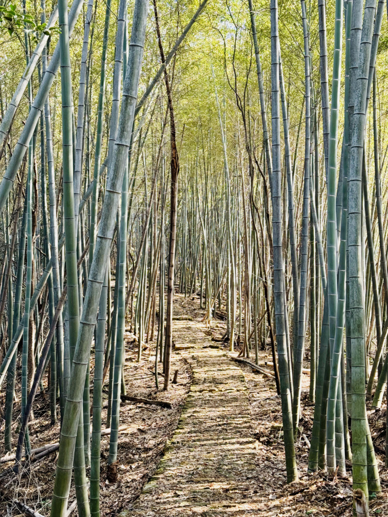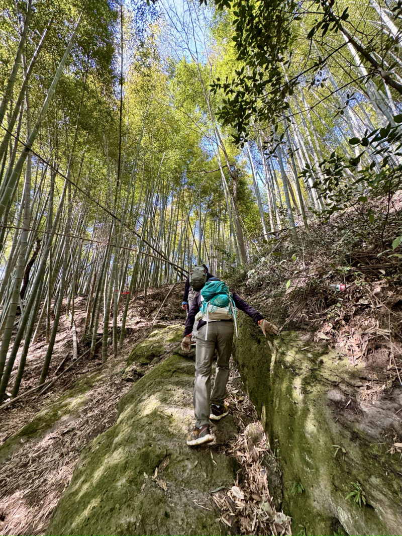 全程途径吉山梅花林、三个水库、曹山寺,水库不大,却也精致,路型以土路、石板路为主,穿越在竹林之间。