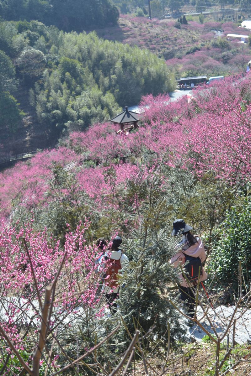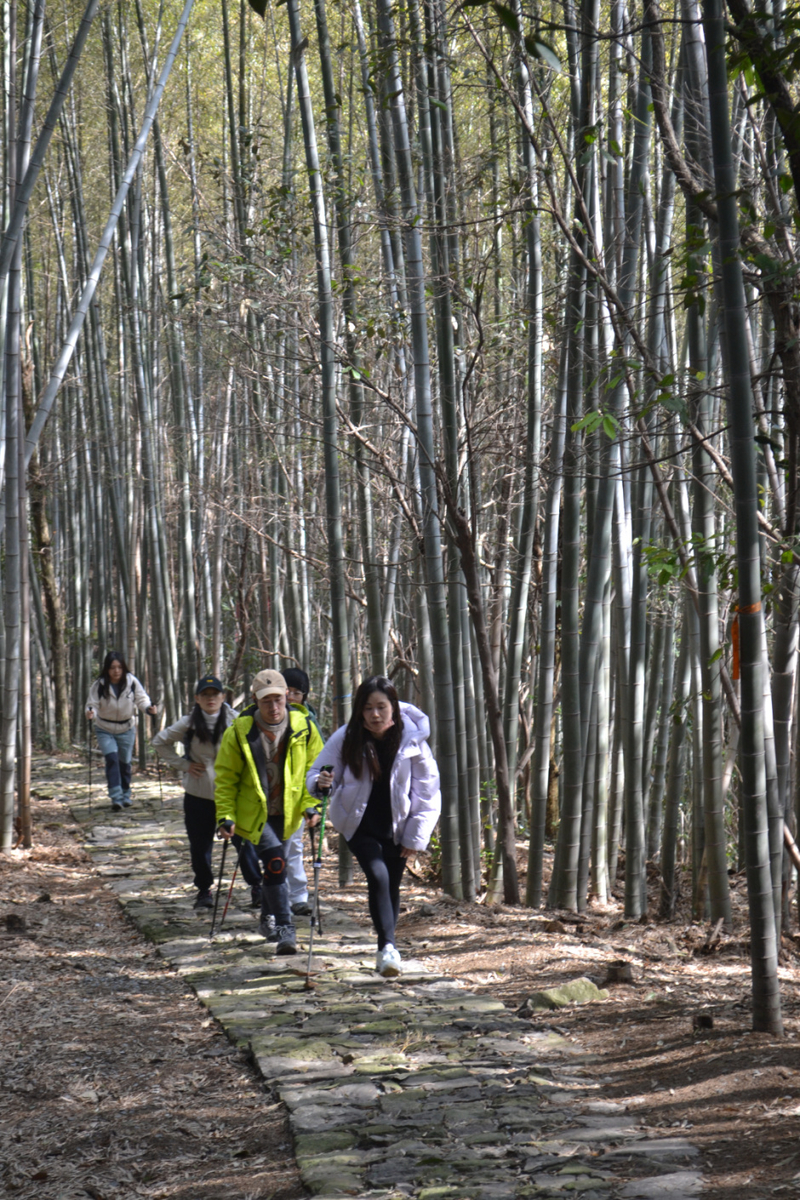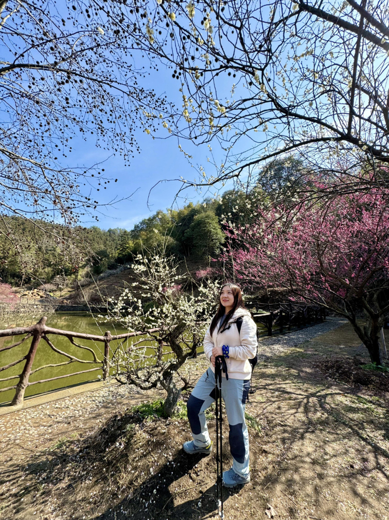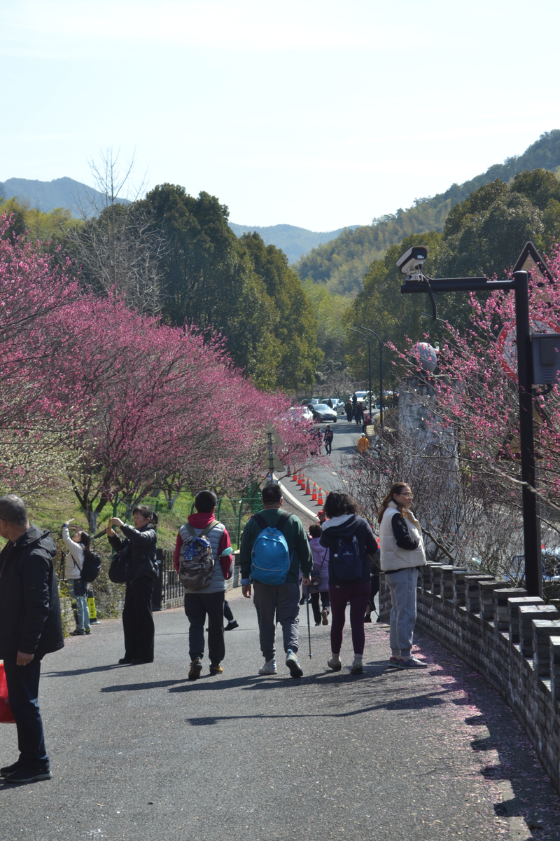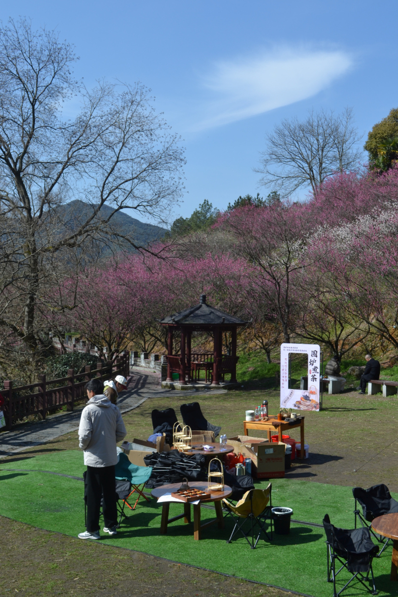 这次徒步,不仅可以领略萧绍古道风景,还可以看到沿路梅花,吉山梅园更是吸引不少自驾游客来游玩,徜徉在浩瀚的花海里,同时有小吃店和围炉煮茶供休息,沐浴着温暖的阳光。