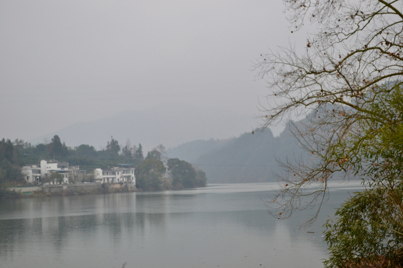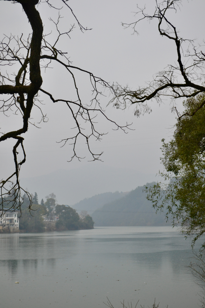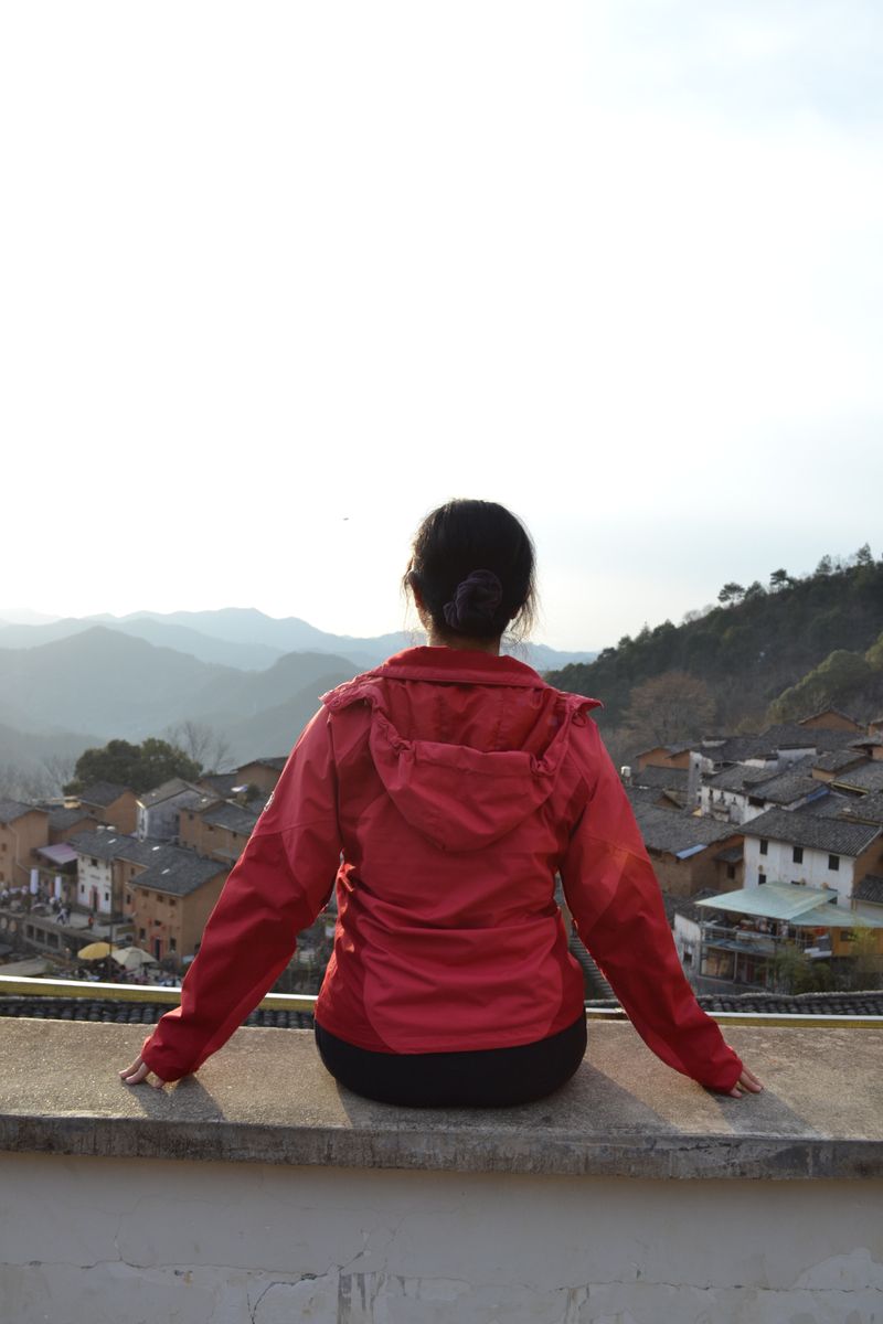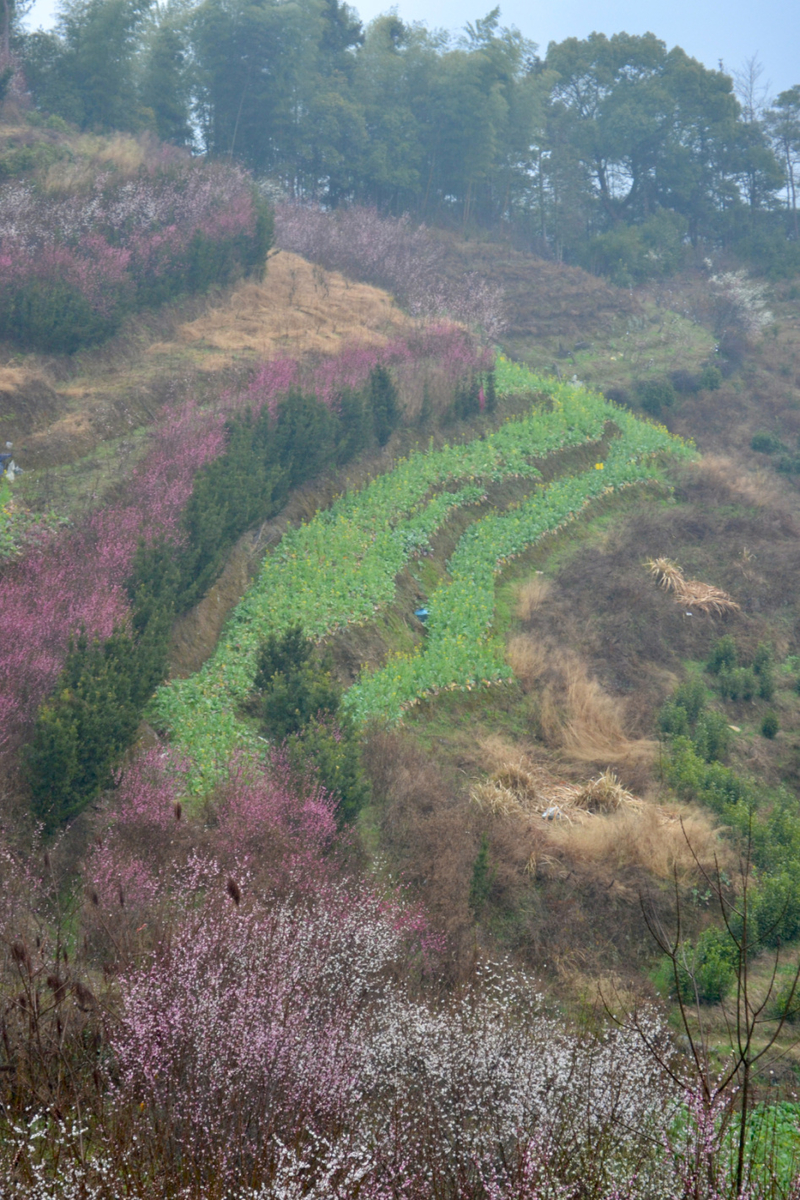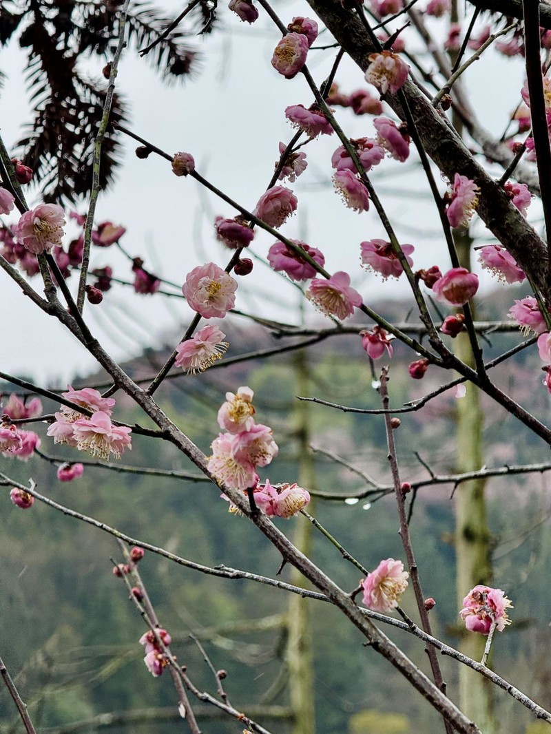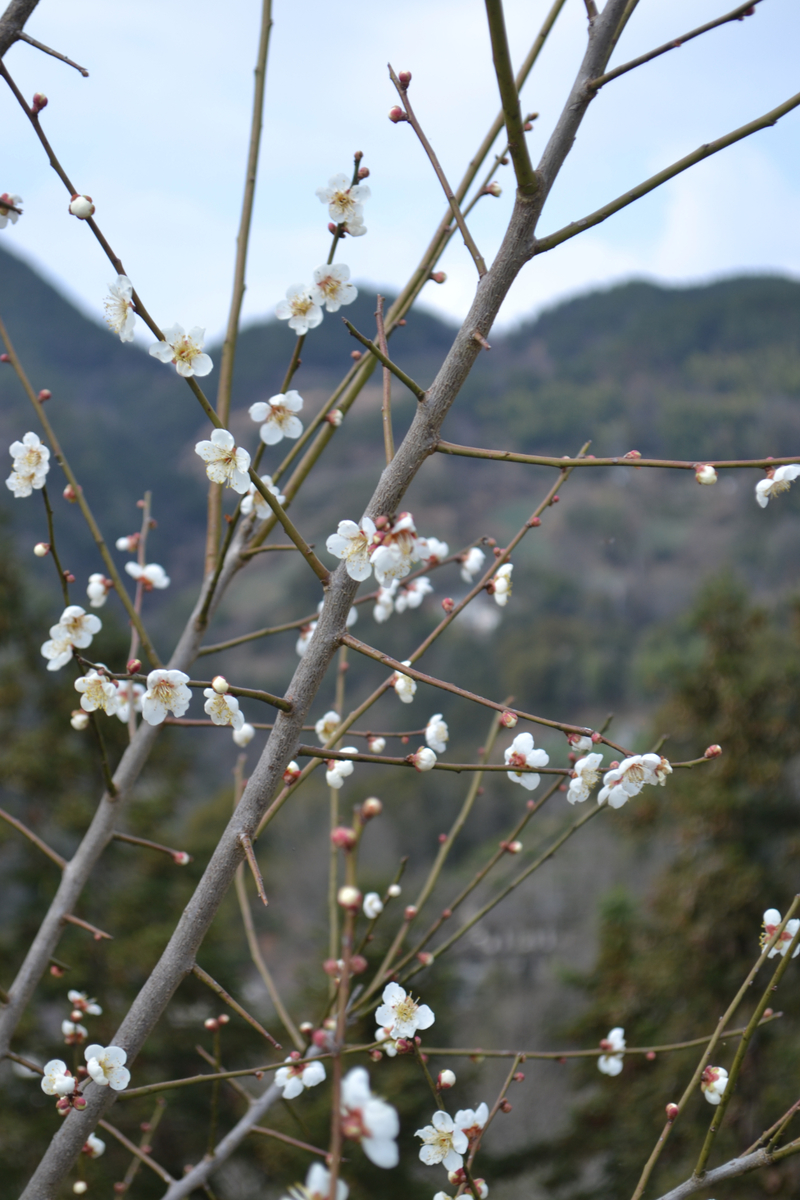 我们首先来到山村的高出,村落四面环山,坐落在山坳之中,俯瞰满山遍野梅花林,夹带着徽派白墙灰瓦的村庄,很壮观。也是由于小雨阴天的天气,更是增加了一些云海的感觉。