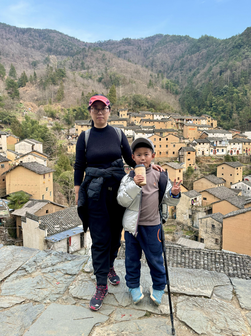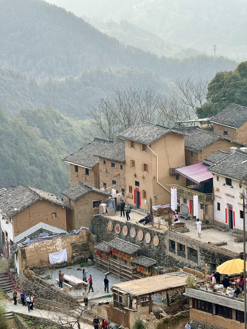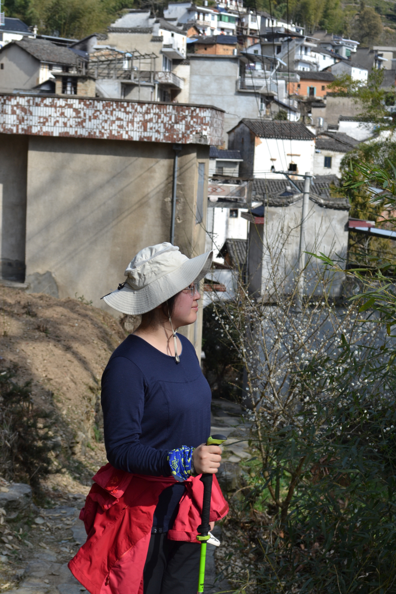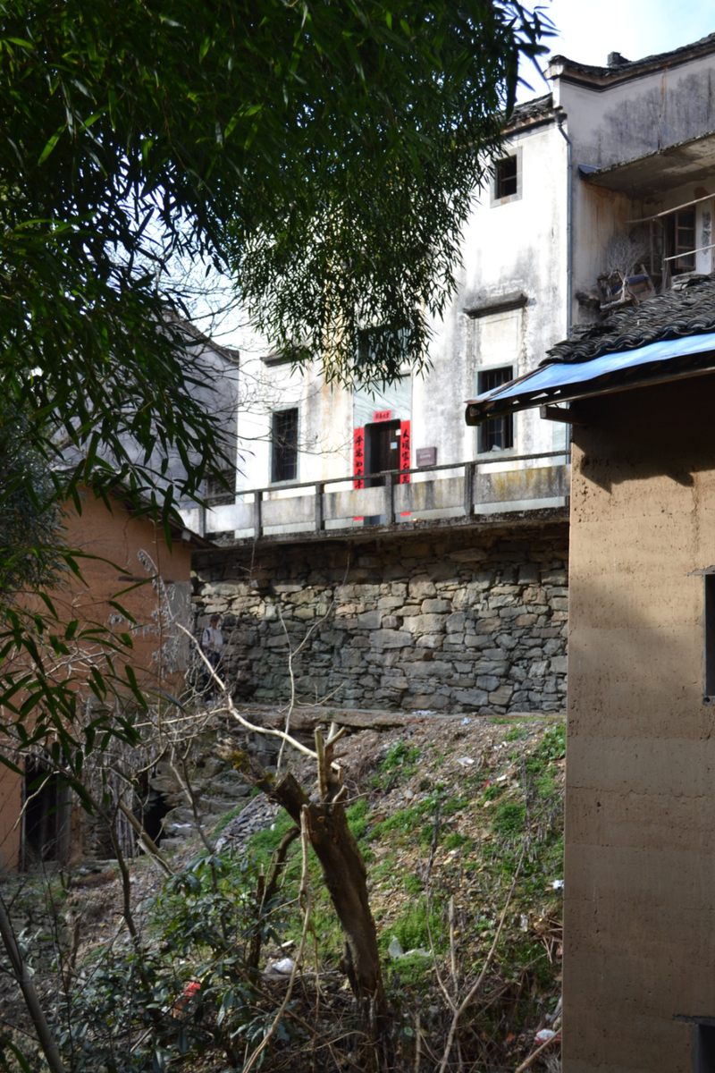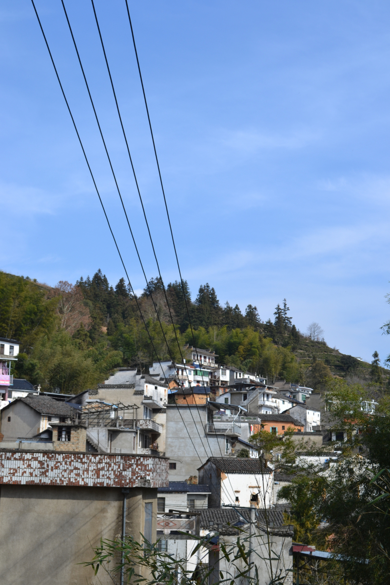 经过不到4小时的徒步,我们来到阳产土楼,白黄相间,与村庄周边的古树林一起构成一幅绝妙油画。阳产土楼位于皖南山区的深渡镇,在群山之中,是一个依山而筑的小山寨。这里由于地势高,交通不便,数百年来,山民就地取材,采周边青石铺路架桥,取红壤木材筑巢而居,形成了现在的山庄。村庄还住有村民,出去也有景区短驳车,单程15元,由于是过年期间,人比平时多了一些,要排队。