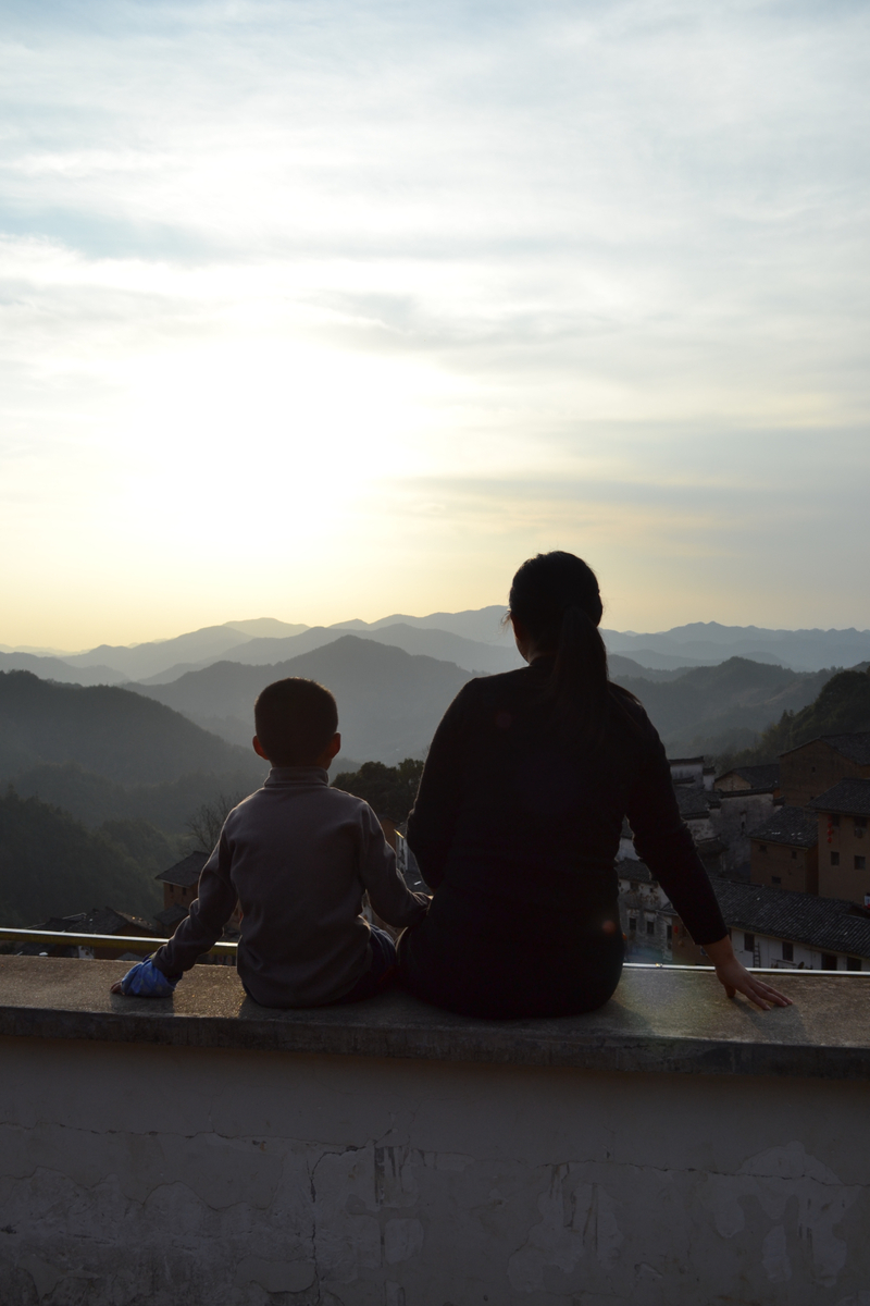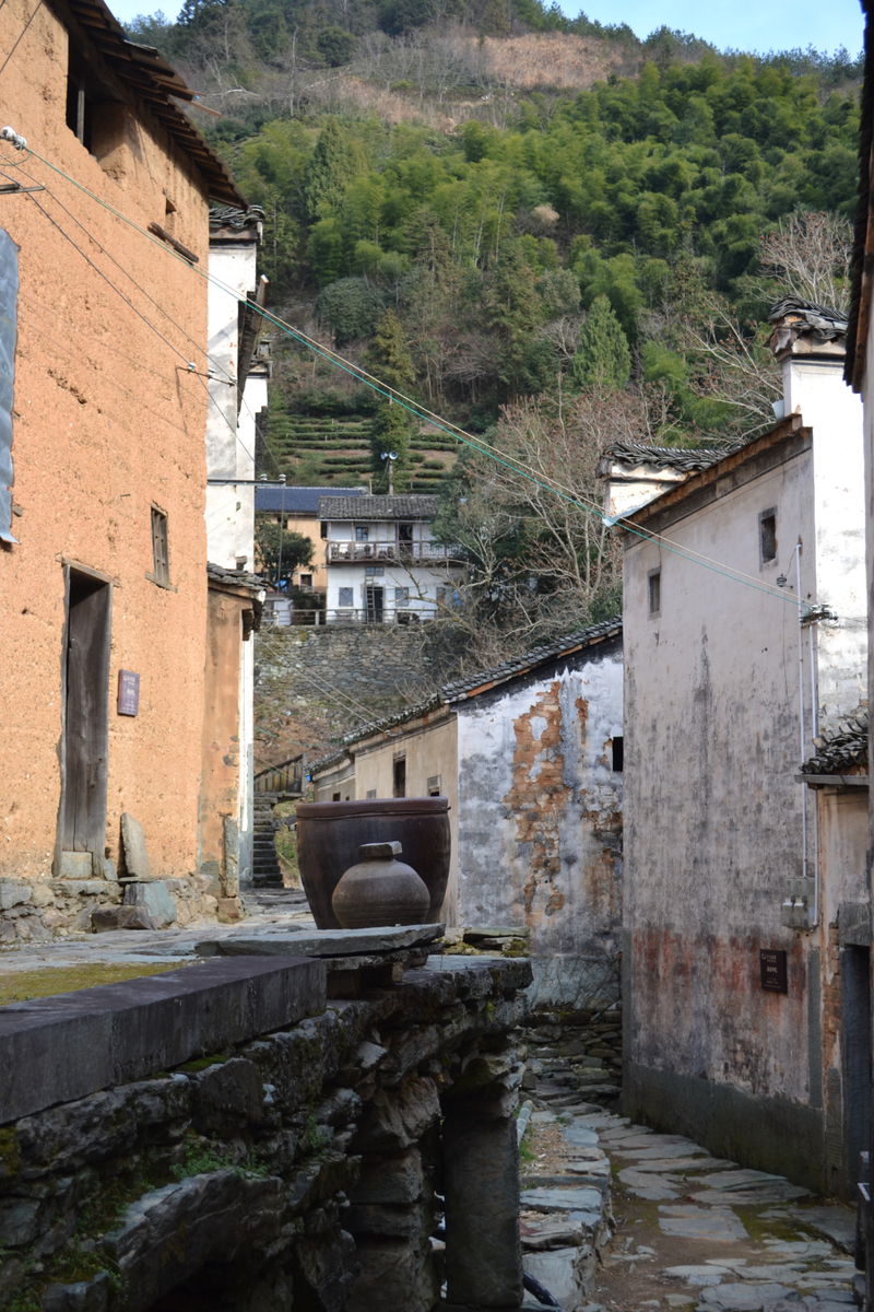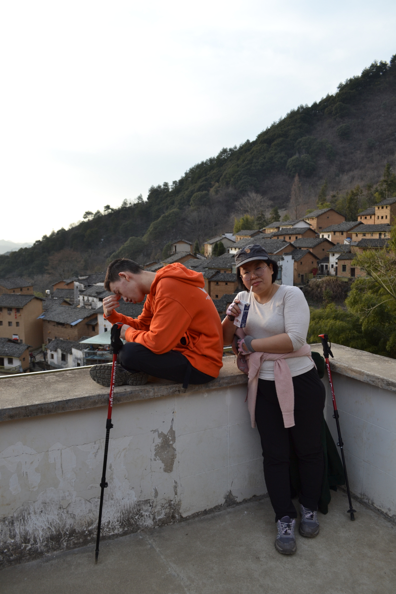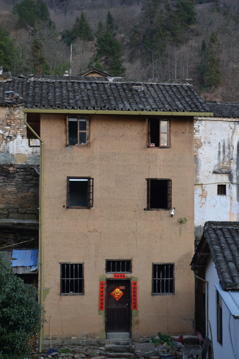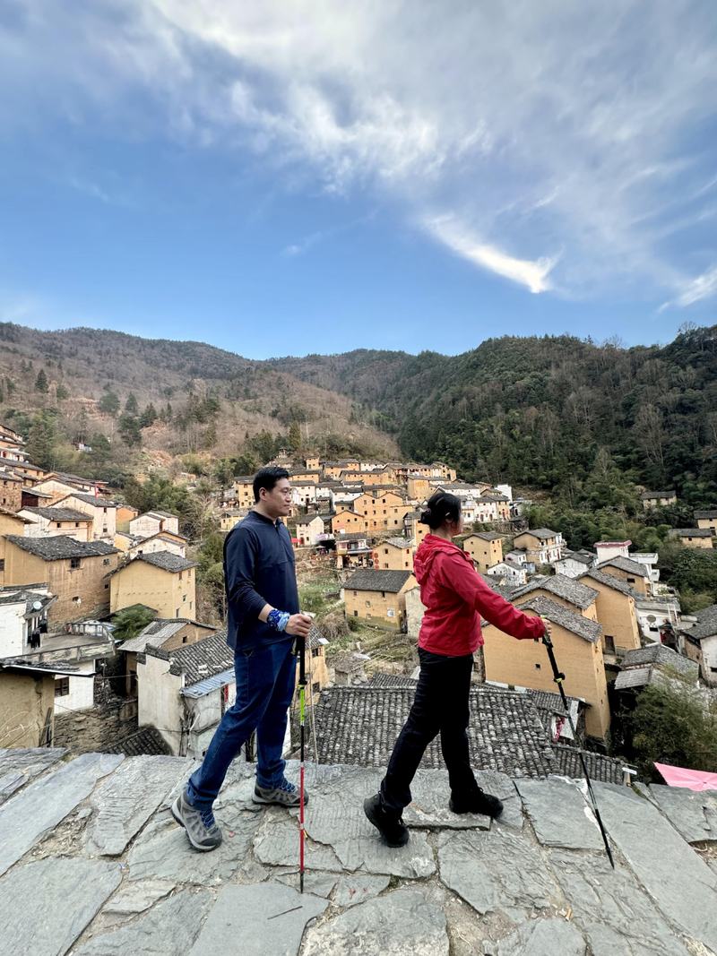 经过不到4小时的徒步,我们来到阳产土楼,白黄相间,与村庄周边的古树林一起构成一幅绝妙油画。阳产土楼位于皖南山区的深渡镇,在群山之中,是一个依山而筑的小山寨。这里由于地势高,交通不便,数百年来,山民就地取材,采周边青石铺路架桥,取红壤木材筑巢而居,形成了现在的山庄。村庄还住有村民,出去也有景区短驳车,单程15元,由于是过年期间,人比平时多了一些,要排队。