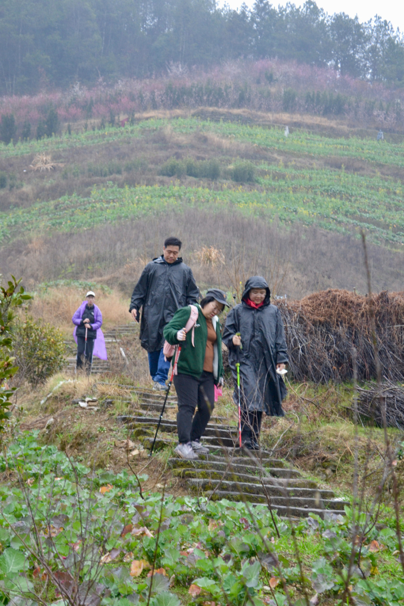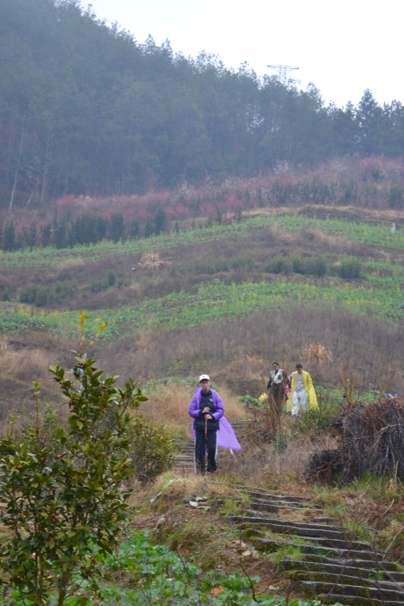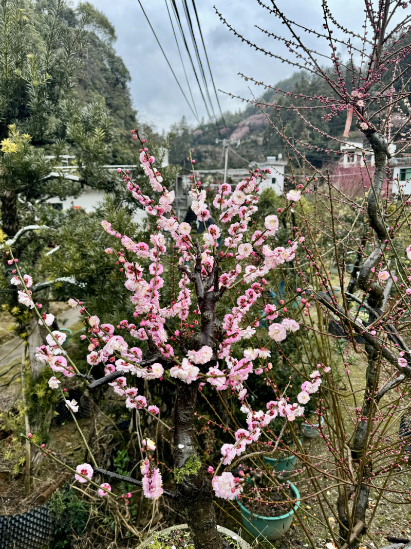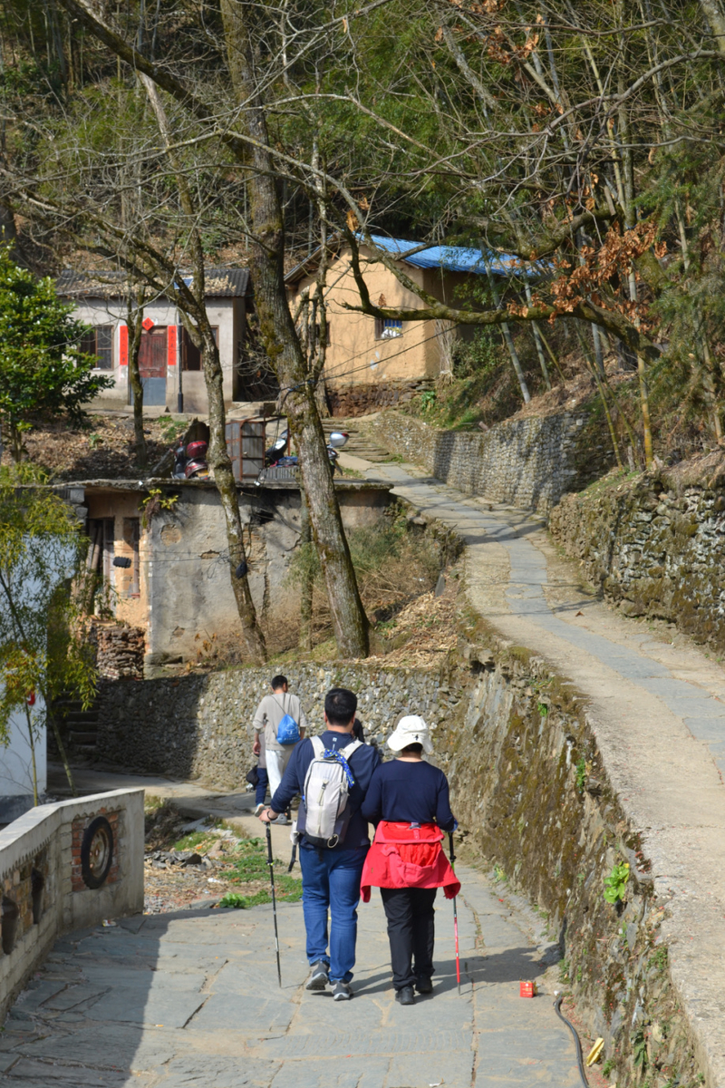 我们沿村中毛家岭步道和百步云梯行走,穿梭在梅花林。后进入村里,村中主要以盆景种植为主,家家户户都有,村民质朴,山间小村,走走很舒服。午饭可在村中解决,基本以农家自己做为主,整体商业化不重。