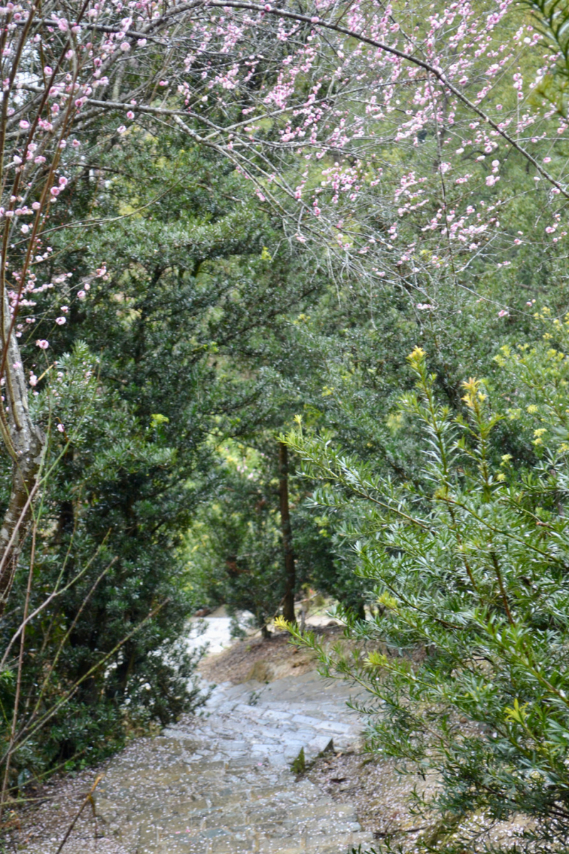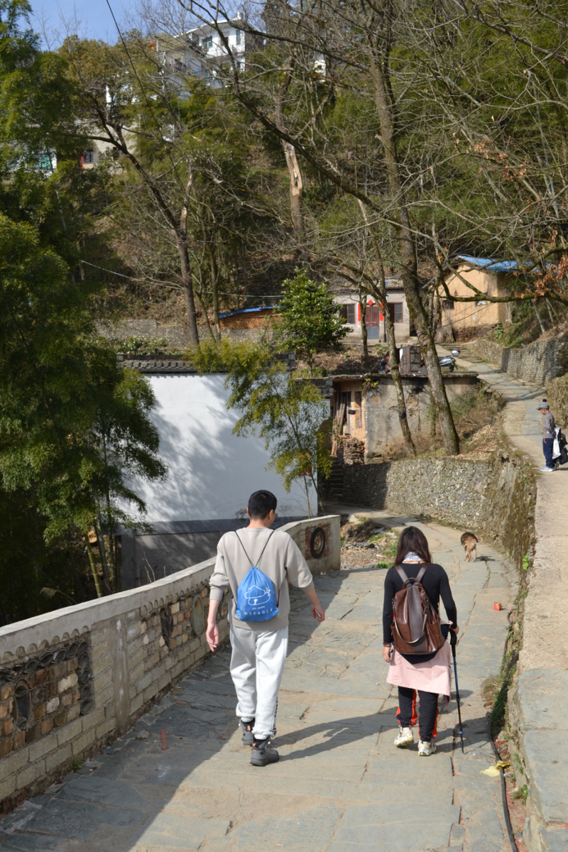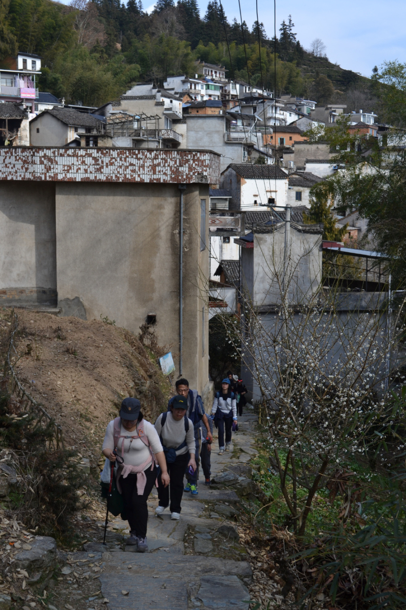 我们沿村中毛家岭步道和百步云梯行走,穿梭在梅花林。后进入村里,村中主要以盆景种植为主,家家户户都有,村民质朴,山间小村,走走很舒服。午饭可在村中解决,基本以农家自己做为主,整体商业化不重。