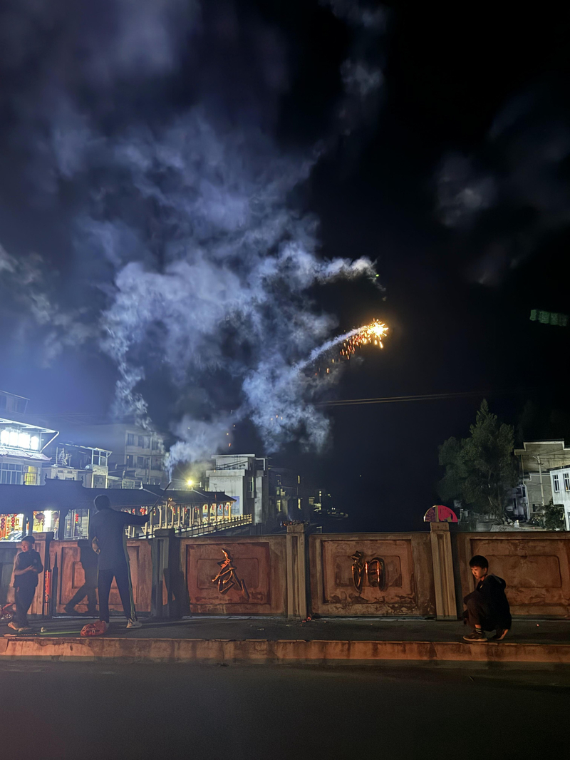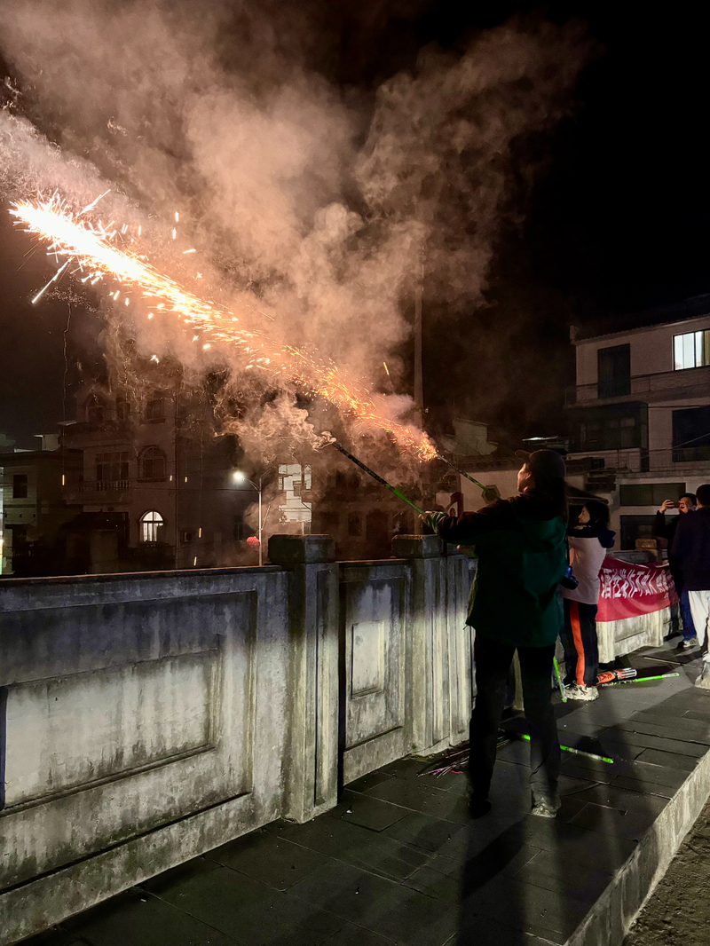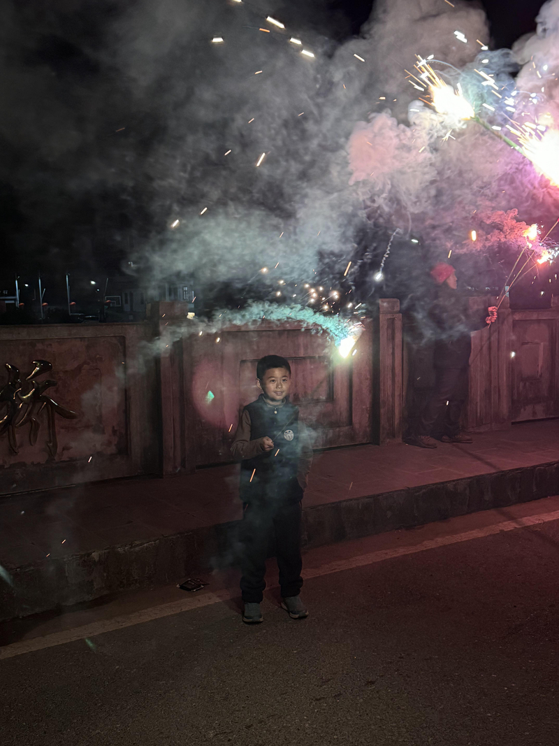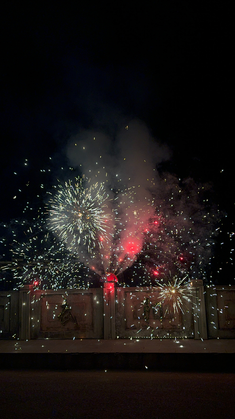 晚上我们在歙县县城住宿吃饭,吃好饭,大家提议买烟花放鞭炮,正好也是初五迎财神,大家相约一起去商店买,你买两种,我买几款,加特林、孔雀开屏、甩鞭...统统安排,妥妥的玩了一个半小时,过了一把烟花的瘾。