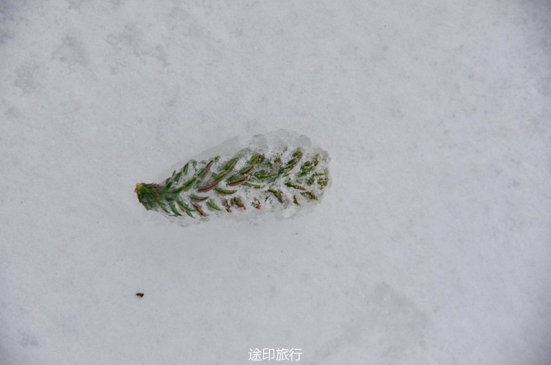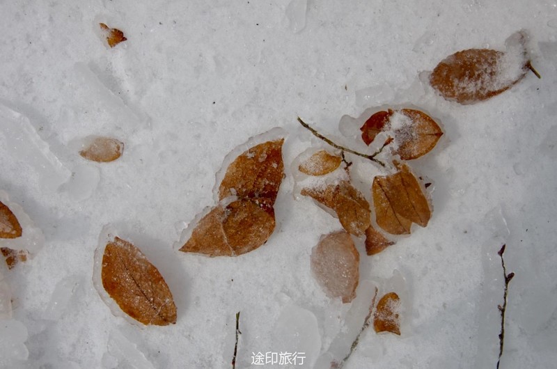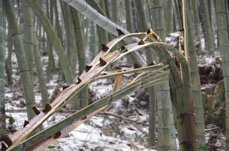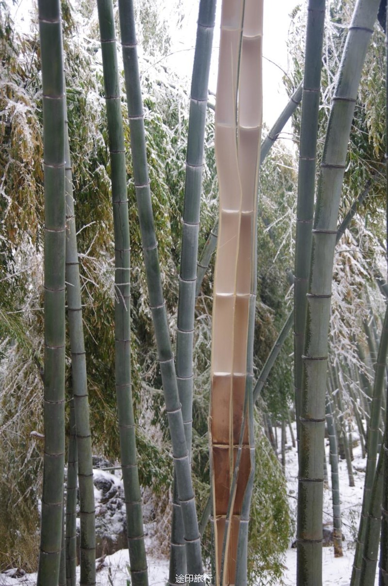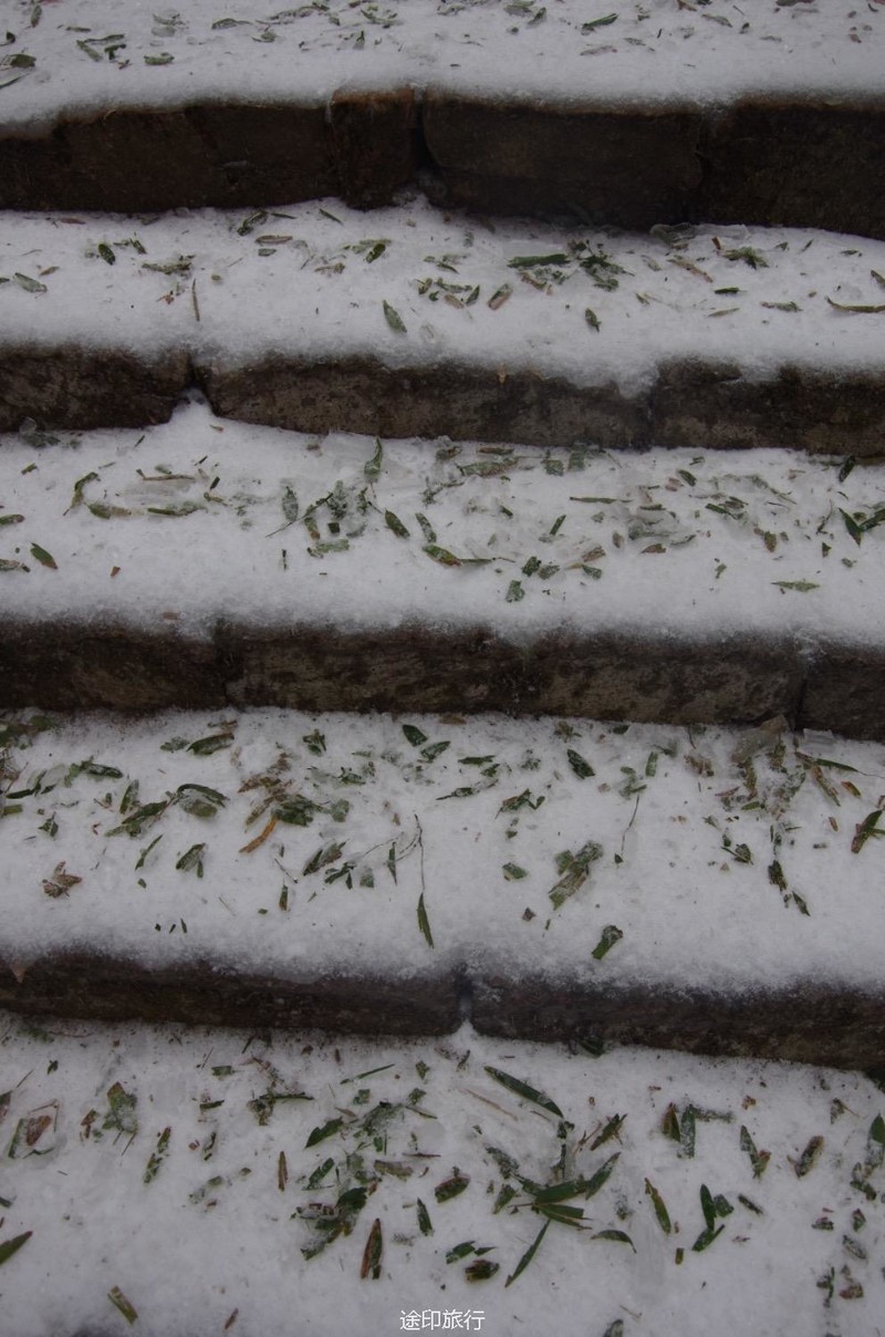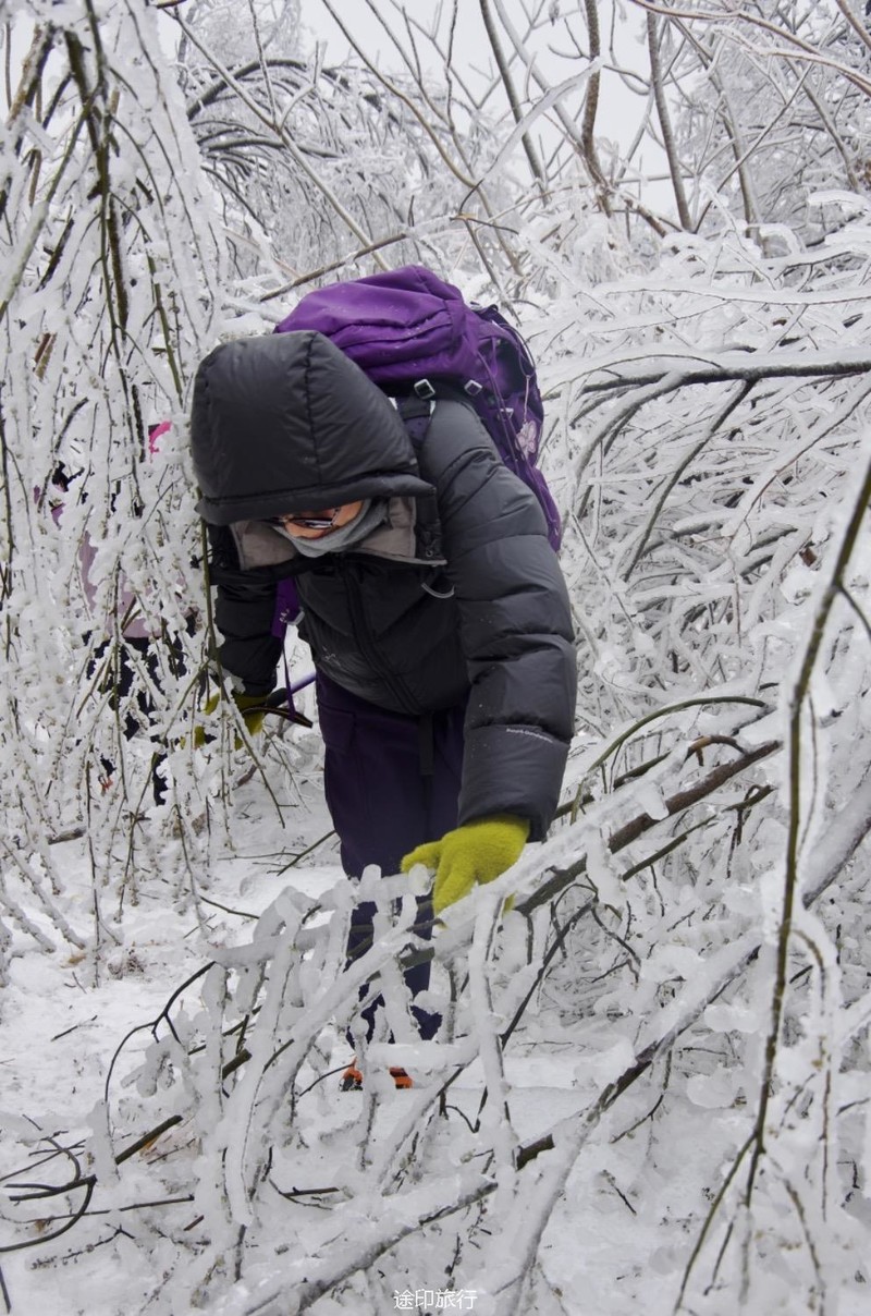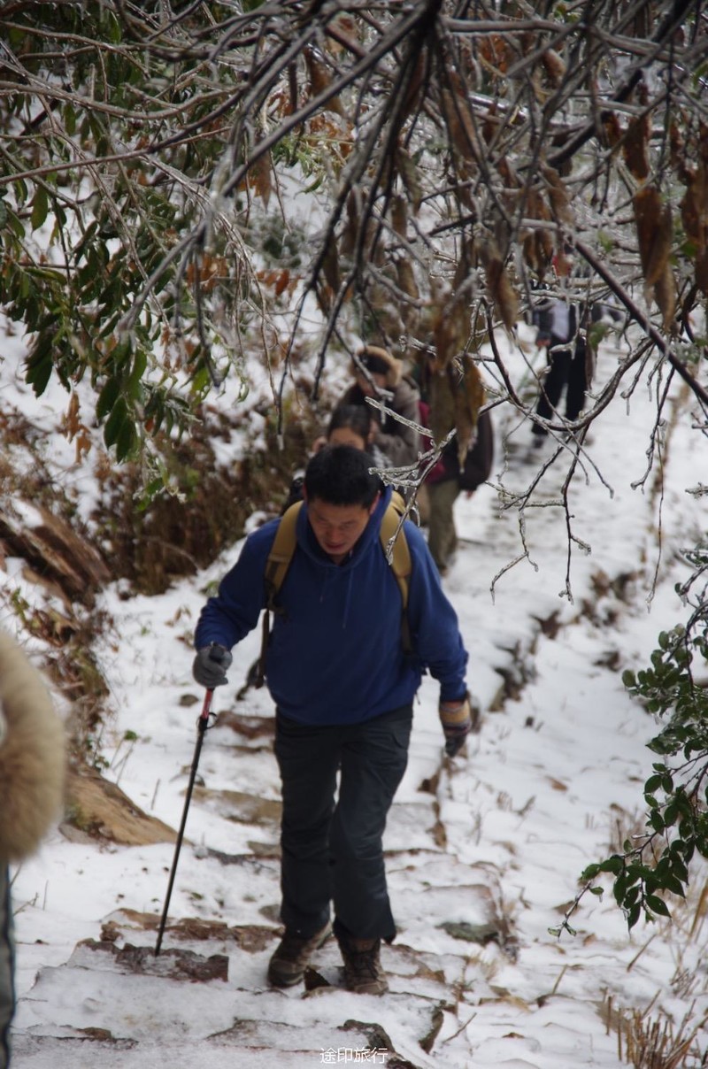 自诩是见过一些美景和世面的,依然被今日的鸬鸟山美到失语! 一场场冰雨让海拔200米开始的所有植被都冰封了,高耸的灌木丛树枝也被压断,折断的树枝,竹子,细碎的松树叶,整枝的杜鹃花芽散落满地,原本清晰的石板路基本已经没了路,钻过垂下来的树枝时冰晶清脆的声音,觉得悦耳,却又生出许多怜惜。 竹子何其坚韧和挺拔,若不是无法承受冰雪之重,又怎会向世间万物弯腰!