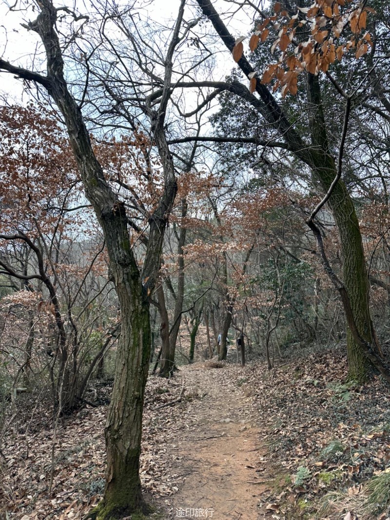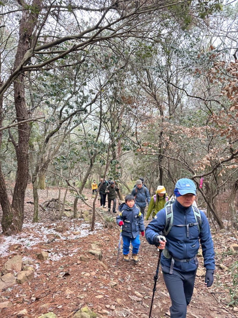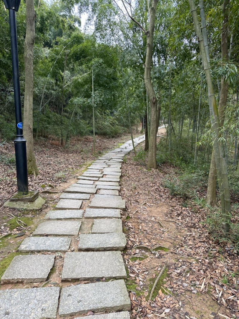 这次我们来到了江苏无锡的军嶂古道,长约15公里,爬升600米左右,前面80%的旅程非常轻松,后面有一个200多米的爬升相对难点。 我们从宝界山公园出发走第一段,到南洋职业技术学院附近这段爬升很小,在森林中穿行。