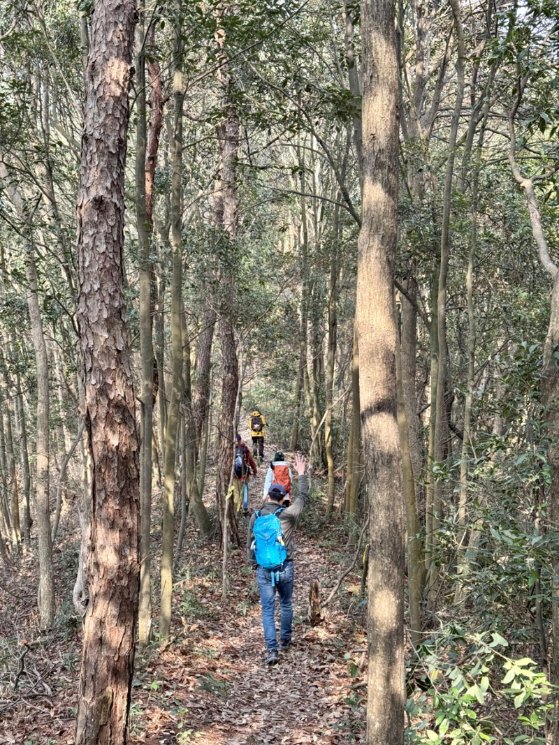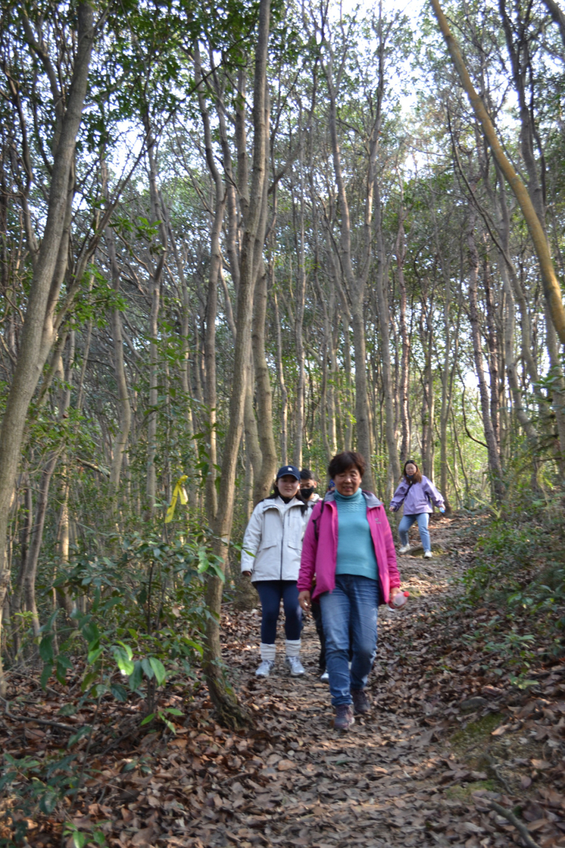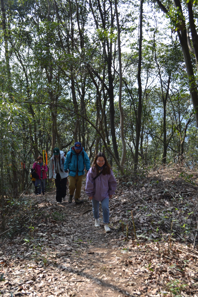 考虑到时间还较早,咨询了一下大家的意见,决定组织大家再爬个山,大概3公里,爬升200多米。走在山里,翻越一个一个山坡,沿着山脊再顺势而下,行走在山林中,感受爬山的乐趣。