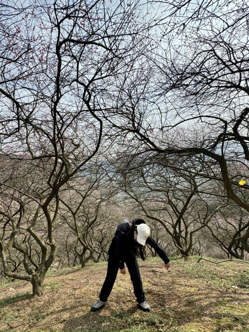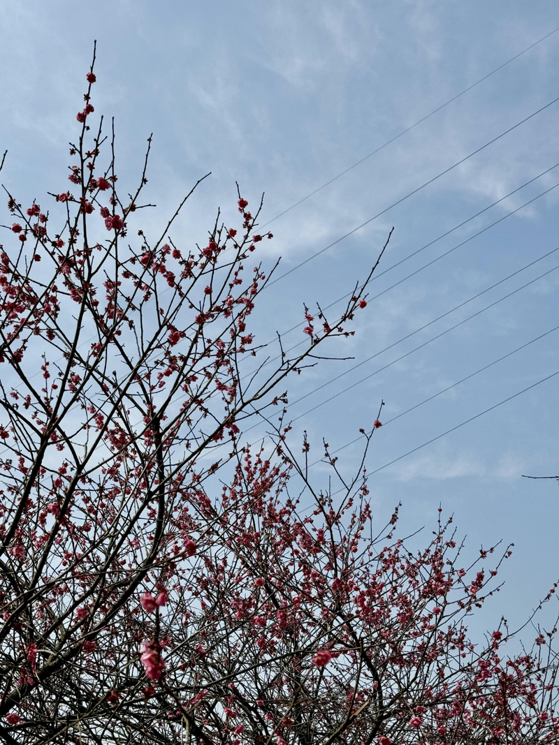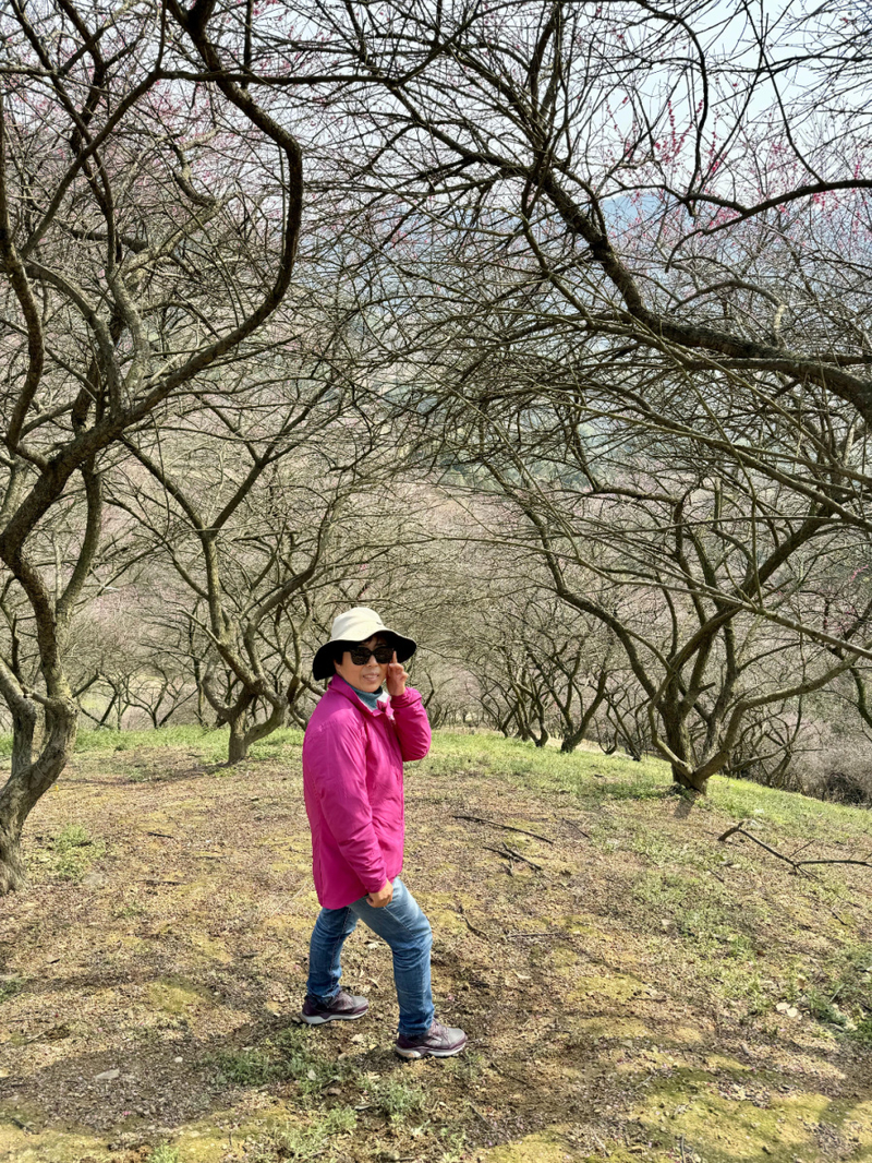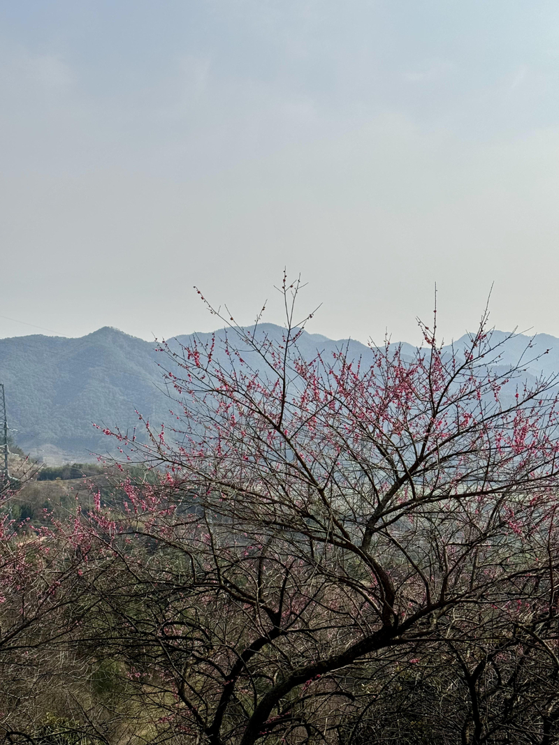 奉化梅花谷的梅花漫山遍野,在山谷之中,30多亩梅林近千株梅花竞相开放,染红了一座座山头,格外绚烂。不过这次去梅花只还有晚梅在盛开,翘楚在枝头。大家在山头逛了一圈,拍花拍照同时进行,走到半山腰有咖啡车,可买杯咖啡,晒晒太阳,非常舒适。