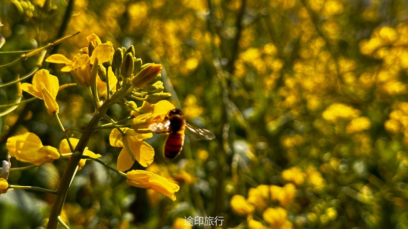 站在最高处,风来自四面八方,无论往哪里走都是下坡路。下山总是轻松热闹的,一路上欢声笑语,直奔油菜花田。