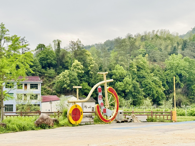 来到山底,再走一段平缓的公路就可以到村里了,这时候放慢脚步,顺道可以拉伸放松一下。