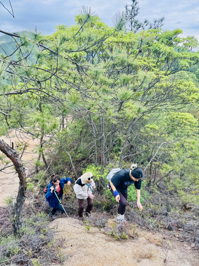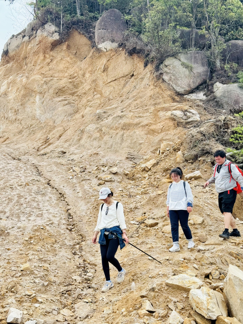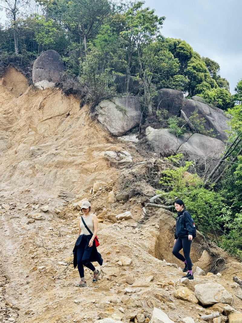 到达山顶的休息亭后,我们开始下山,下山路以碎沙石为主,坡度虽然不大,但是一定要注意防滑。
