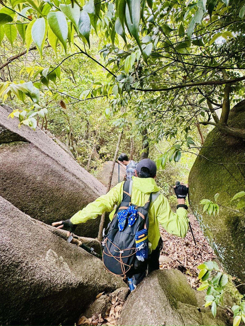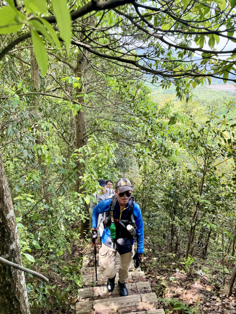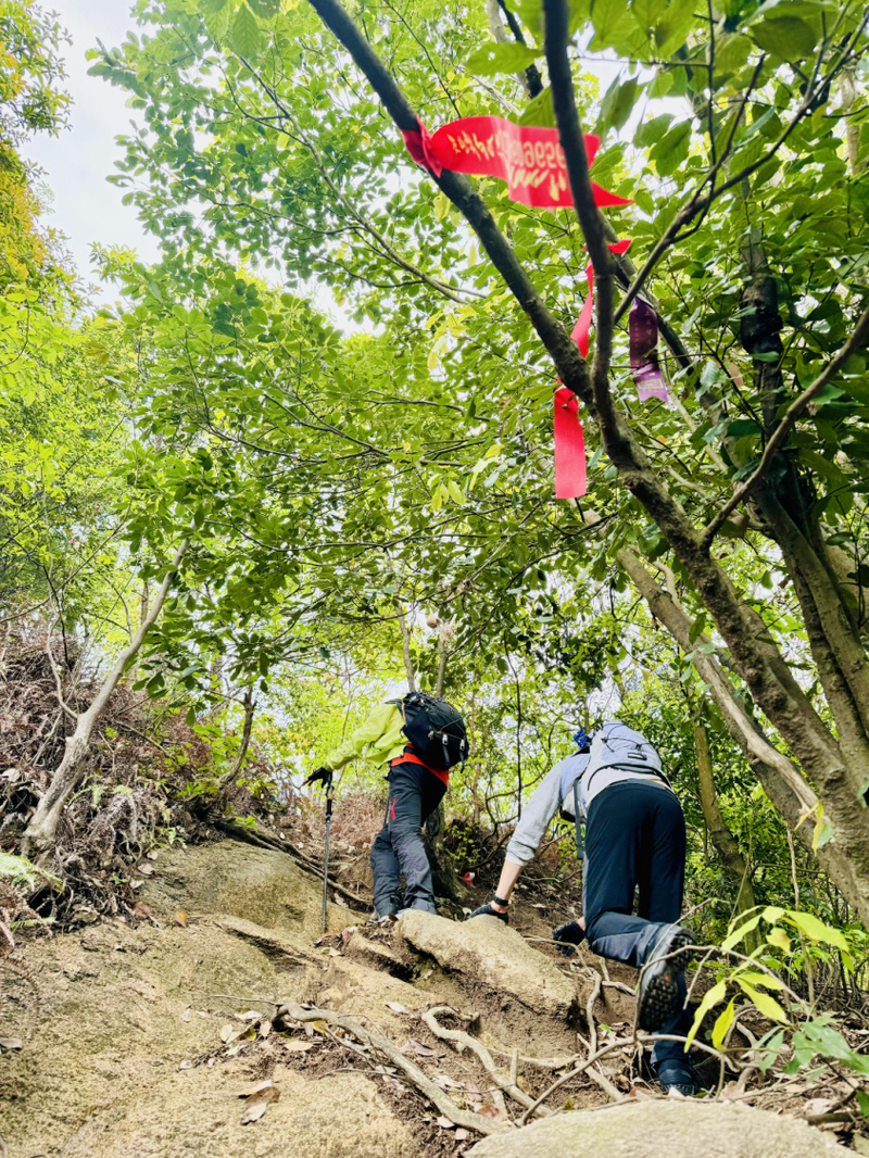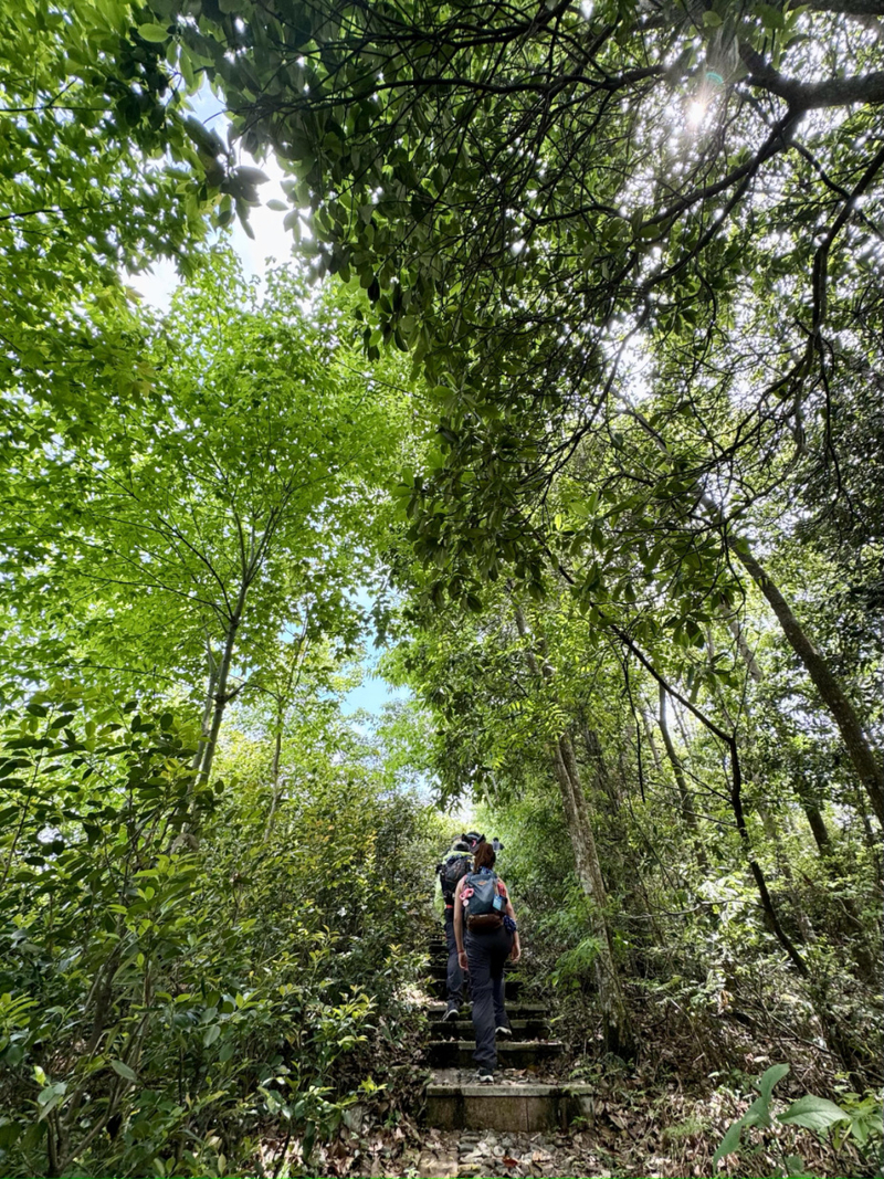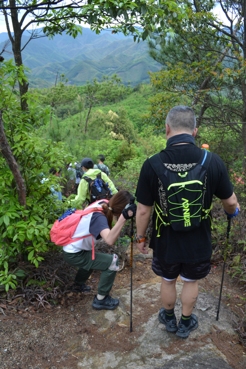 做好热山后,我们开始了今天的徒步,刚开始是一段坡度较缓的上山路,路型以石板路台阶和山路为主,外加今天天气有点热,这时需要控制好自己的徒步节奏。