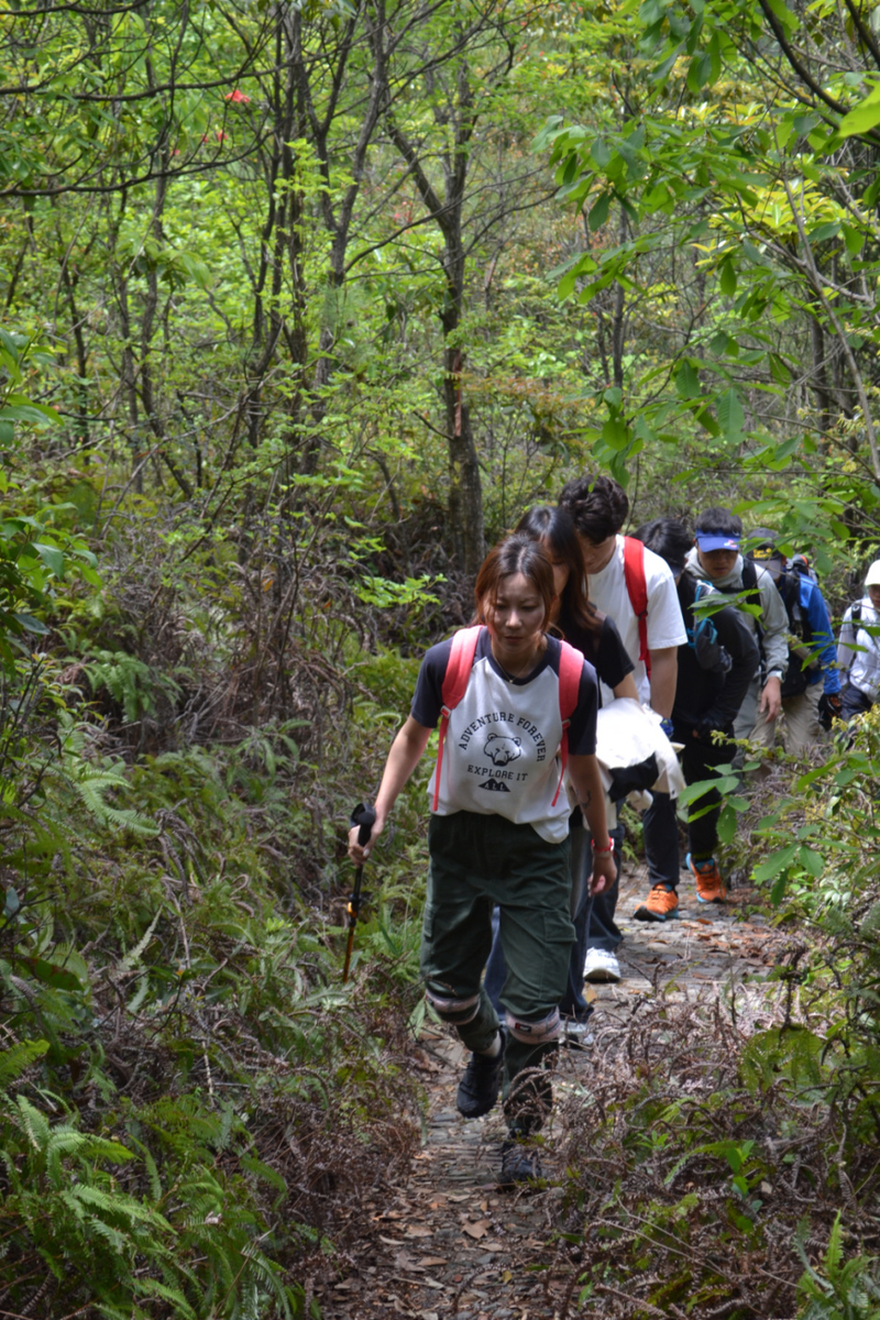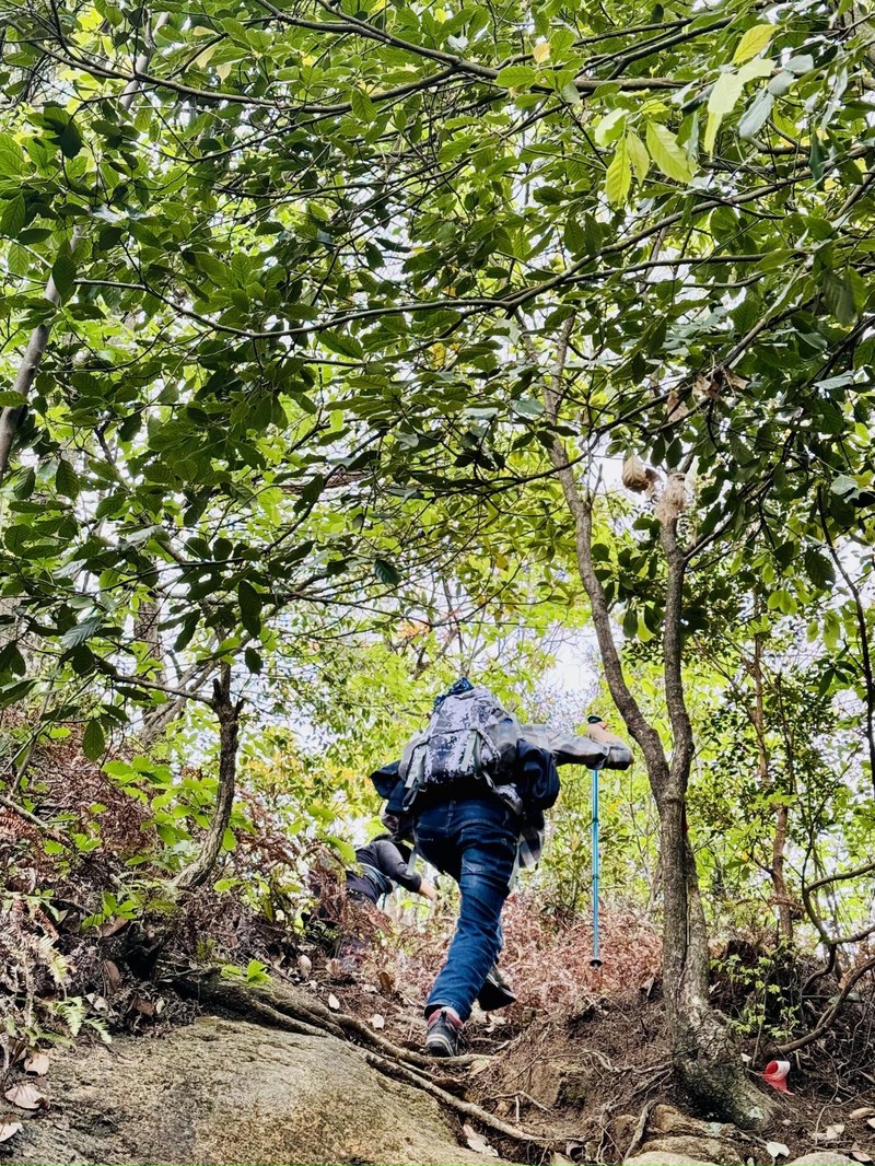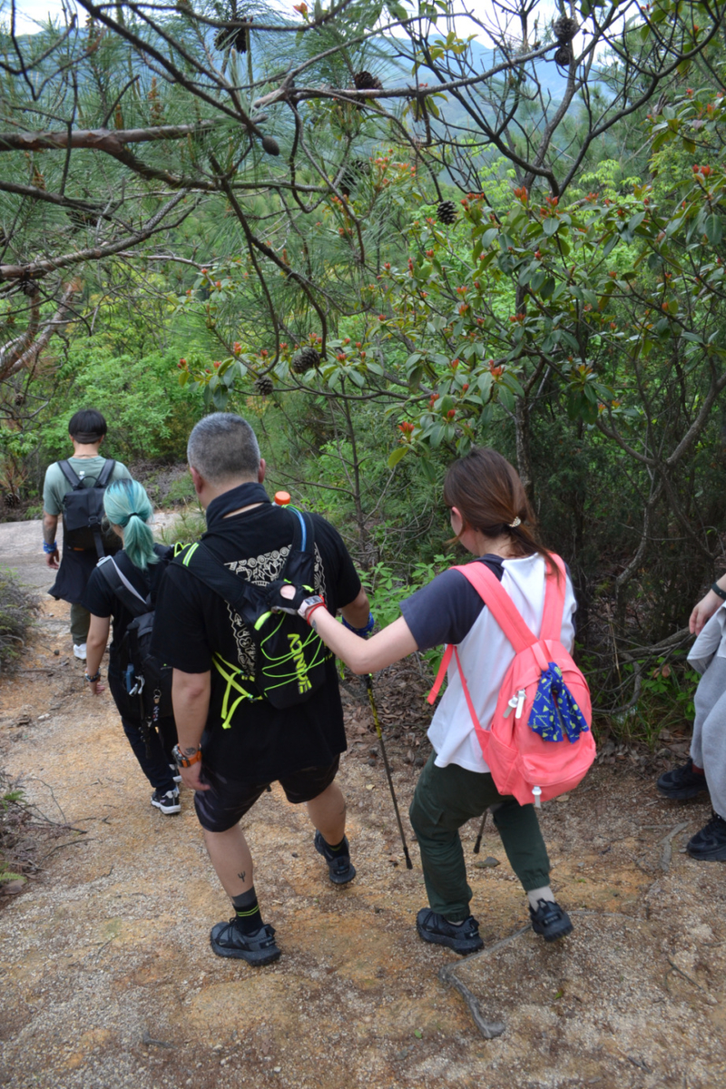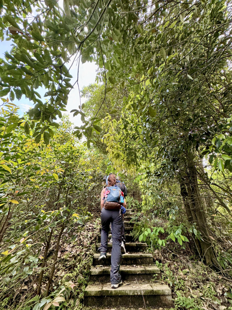 做好热山后,我们开始了今天的徒步,刚开始是一段坡度较缓的上山路,路型以石板路台阶和山路为主,外加今天天气有点热,这时需要控制好自己的徒步节奏。