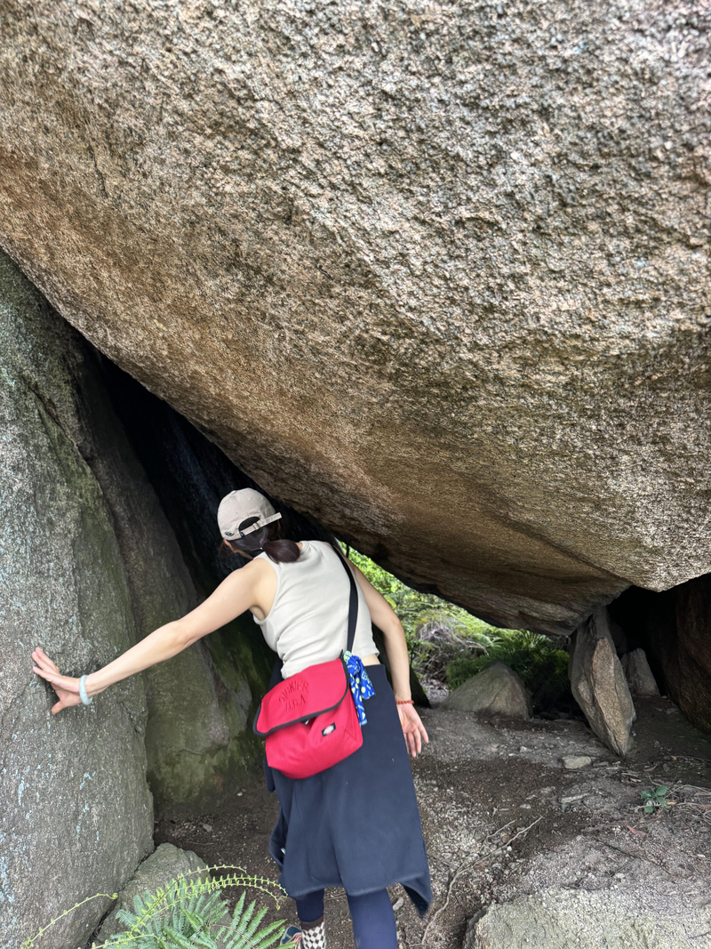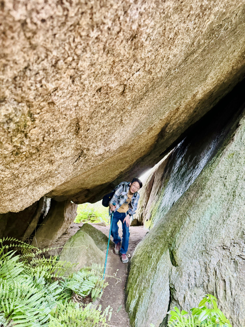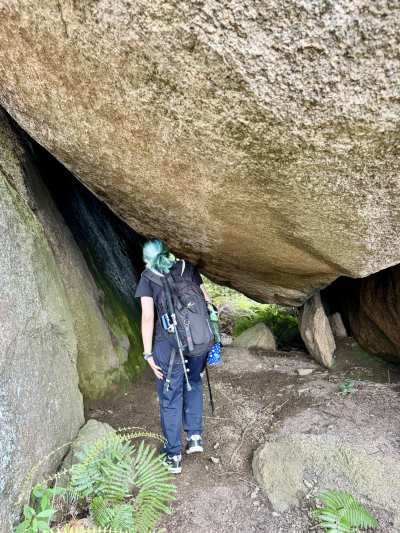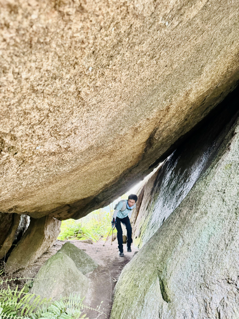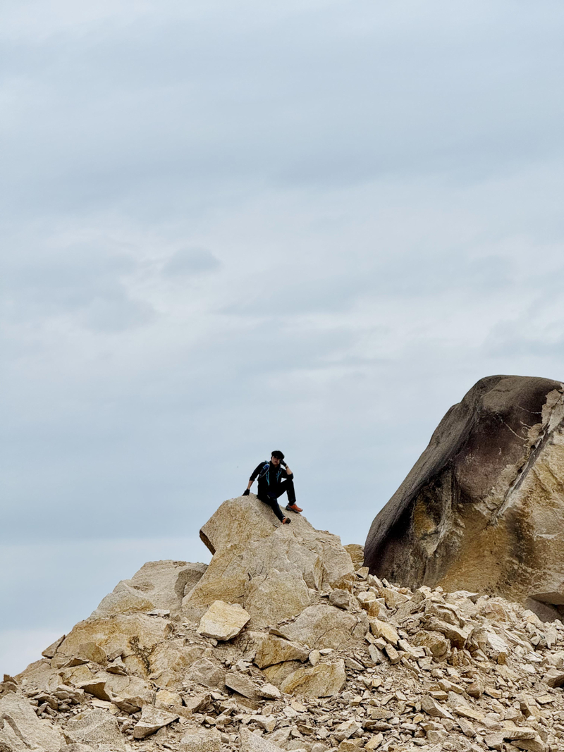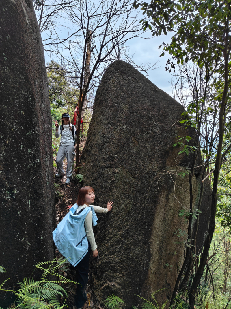在沿途中已经陆续有奇石出现,到达山顶视野变的开阔起来,至此也开始在山脊上行走,需要攀爬大石头,还会路过飞拉达的营地,我们可以在那里拍照打卡体验一下。