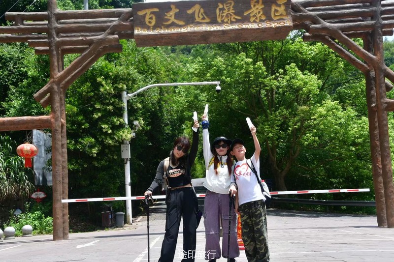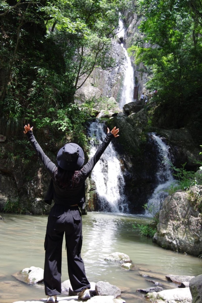 百丈飞瀑,位于浙江省绍兴市嵊州金钩村,浙江省3A景区,平时门票45元。现在免费。 景区里依次有济公潭,九龙潭,逍遥潭,一线瀑,燕尾瀑,戏珠潭,百丈飞瀑。总共九条瀑布,号称江南第一瀑布群。 这次周日去,全程只有我们一个队伍,瀑布区特别清凉,风景不错。