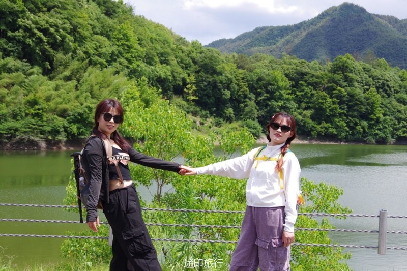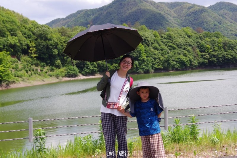 从景区出来以后,我们停留45分钟吃午饭。然后开始下午的环月亮湖徒步。 月亮湖其实是一个水库,因为形状略像月亮而得名。环湖路段都是步道和公路,路况很好。