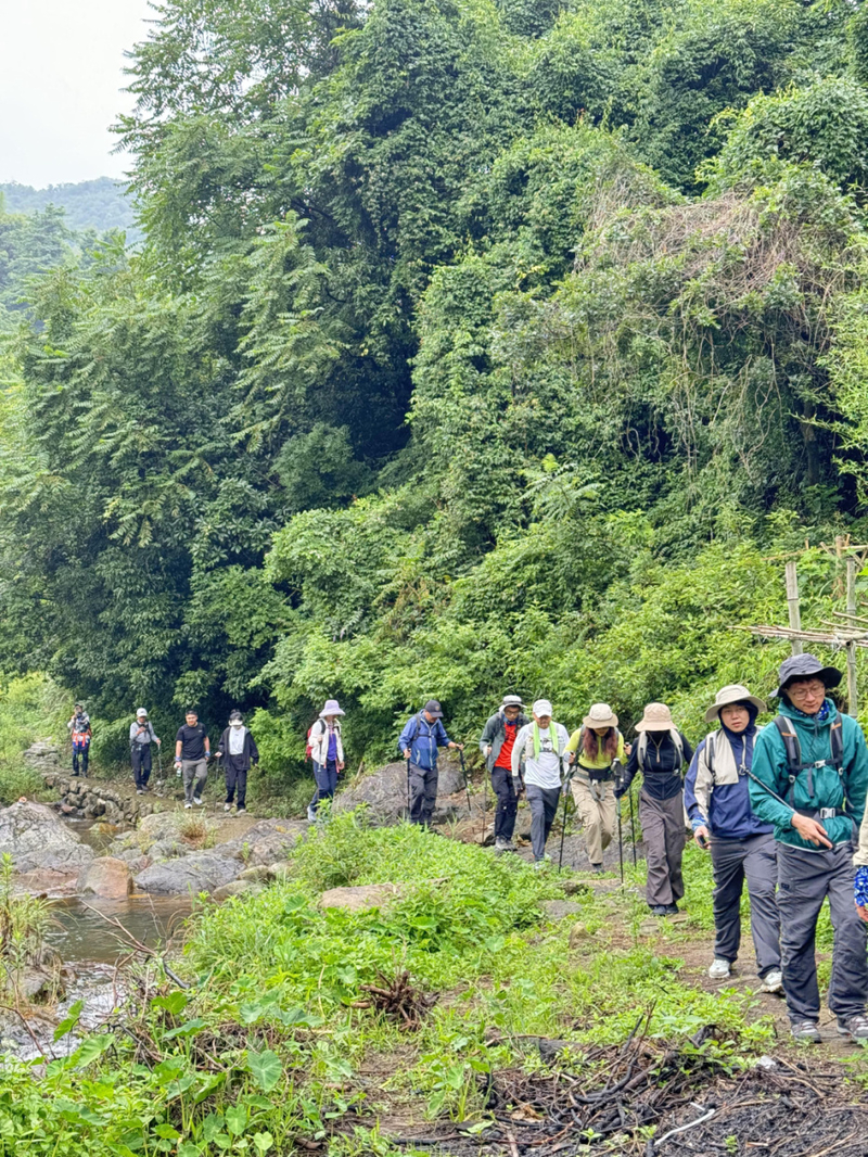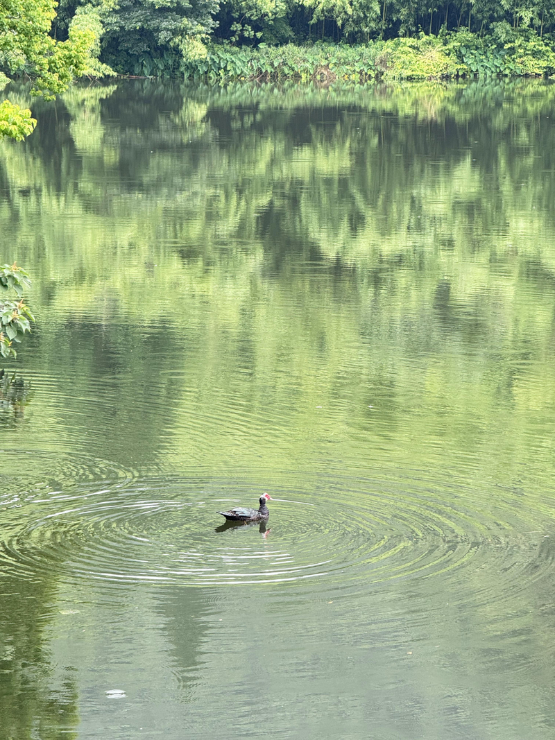 到达徒步七点后,我们先稍事调整一下,然后出发开始徒步,穿过桐岭村,首先来到了姚岭水库,水库不大,水比较绿,里面有鸭子在里面游来游去,泛起一层层涟漪。