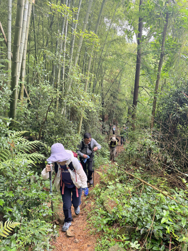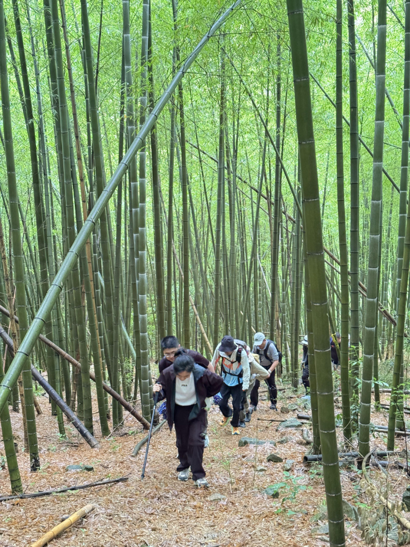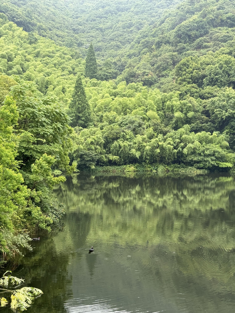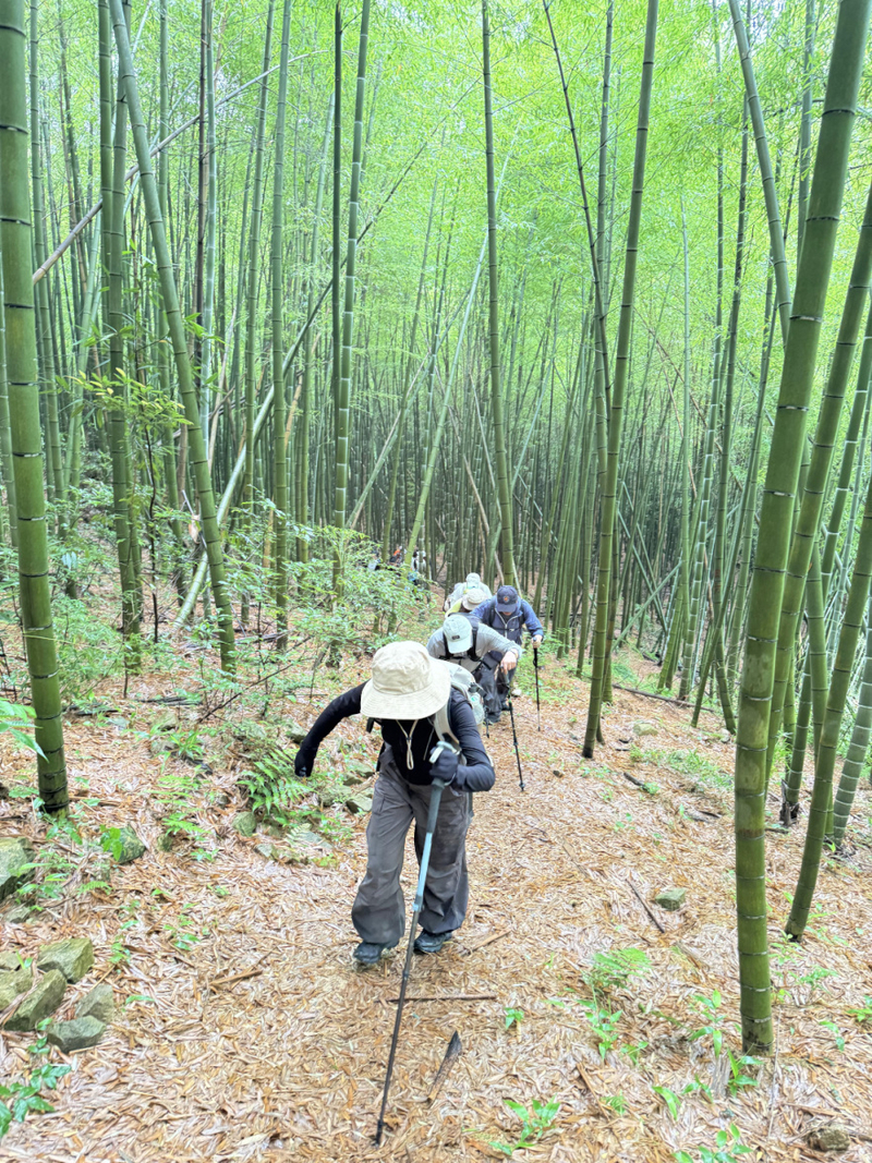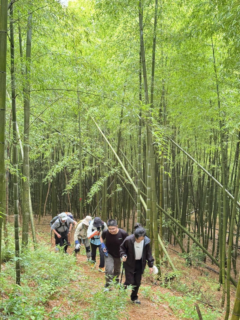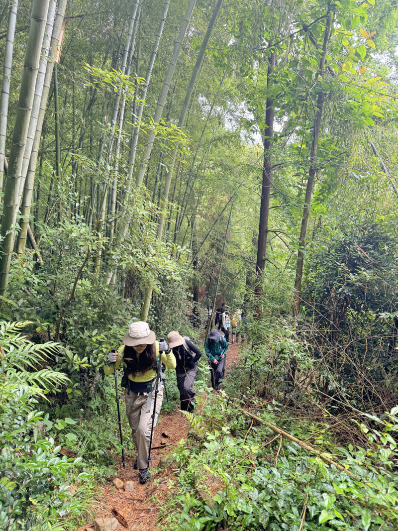 后面开始下山,经过杨梅林、公路、竹林,翻越一座又一座的山,好在这段相对平坦,走起来没那么累,最后到达徒步起点。早下来的小伙伴还给自己加了个量,沿着湖边多走了一圈,妥妥走够13公里。