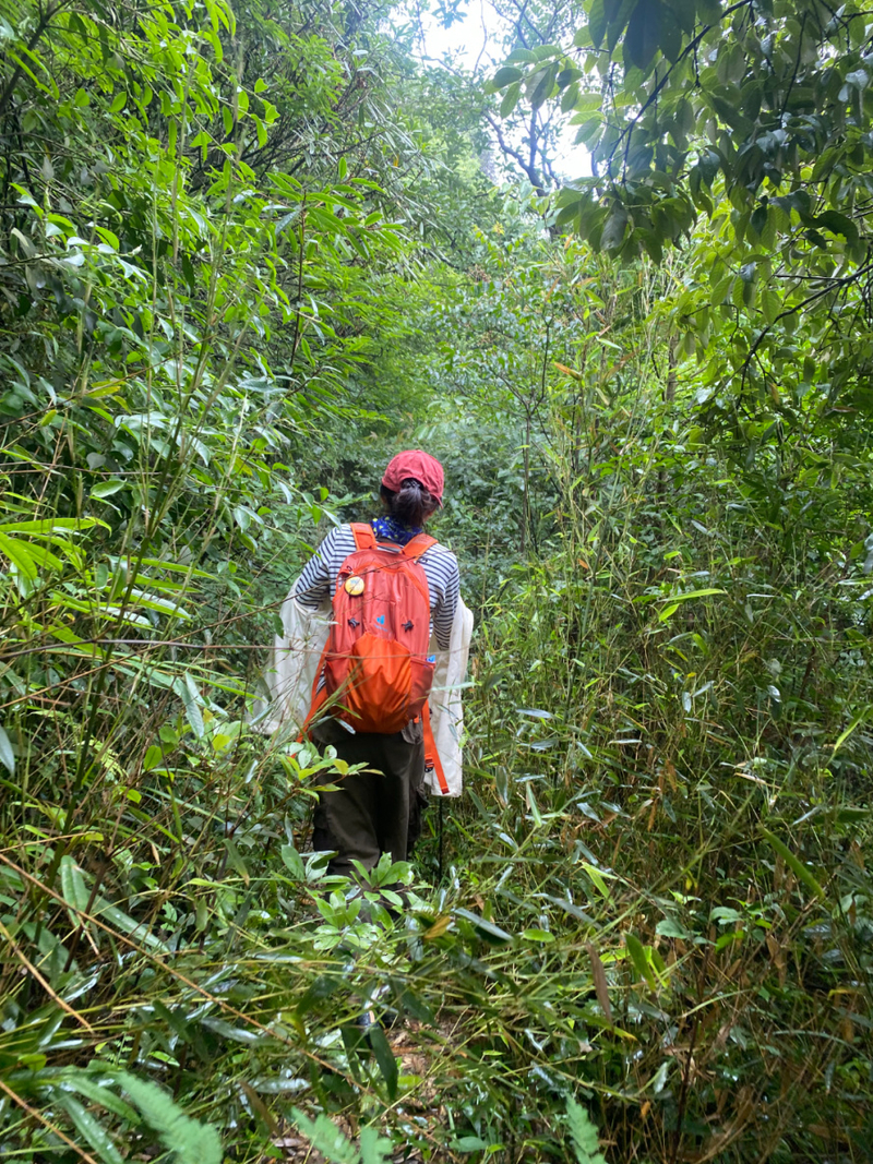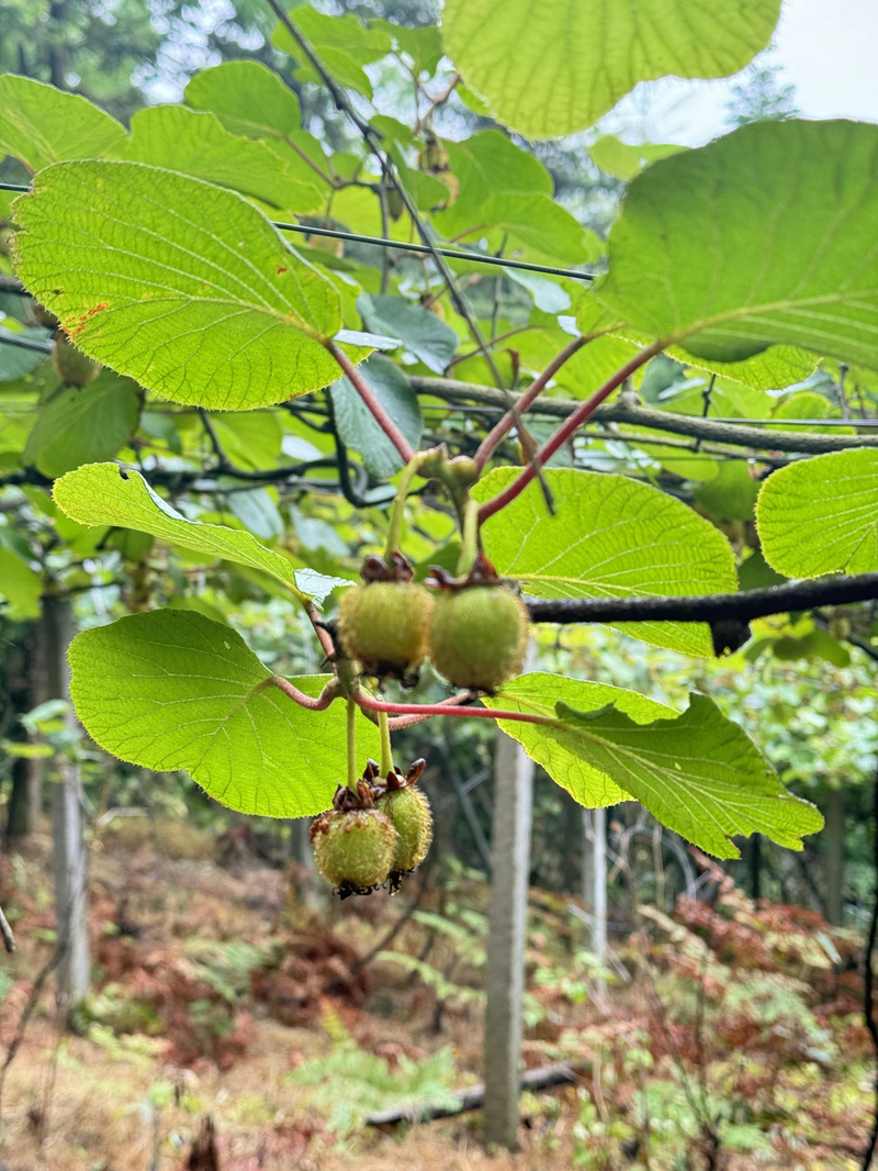 沿着杨梅林向上而走,继续在林中穿越,进而下山,翻山,路过一片猕猴桃庄园,还是小小的个头,夏秋交接时就成熟了吧。