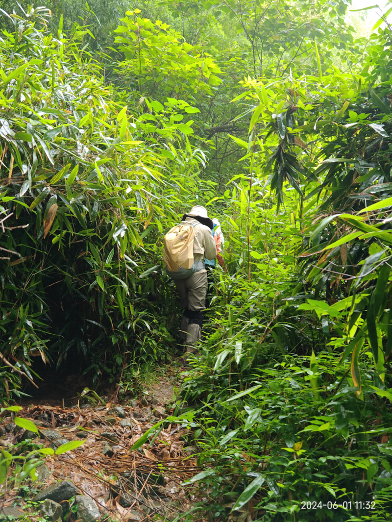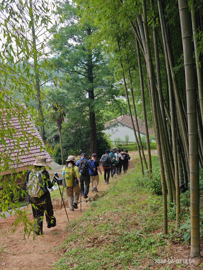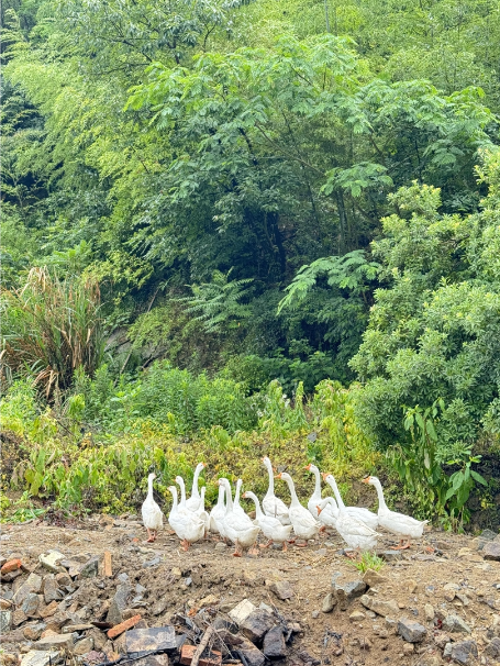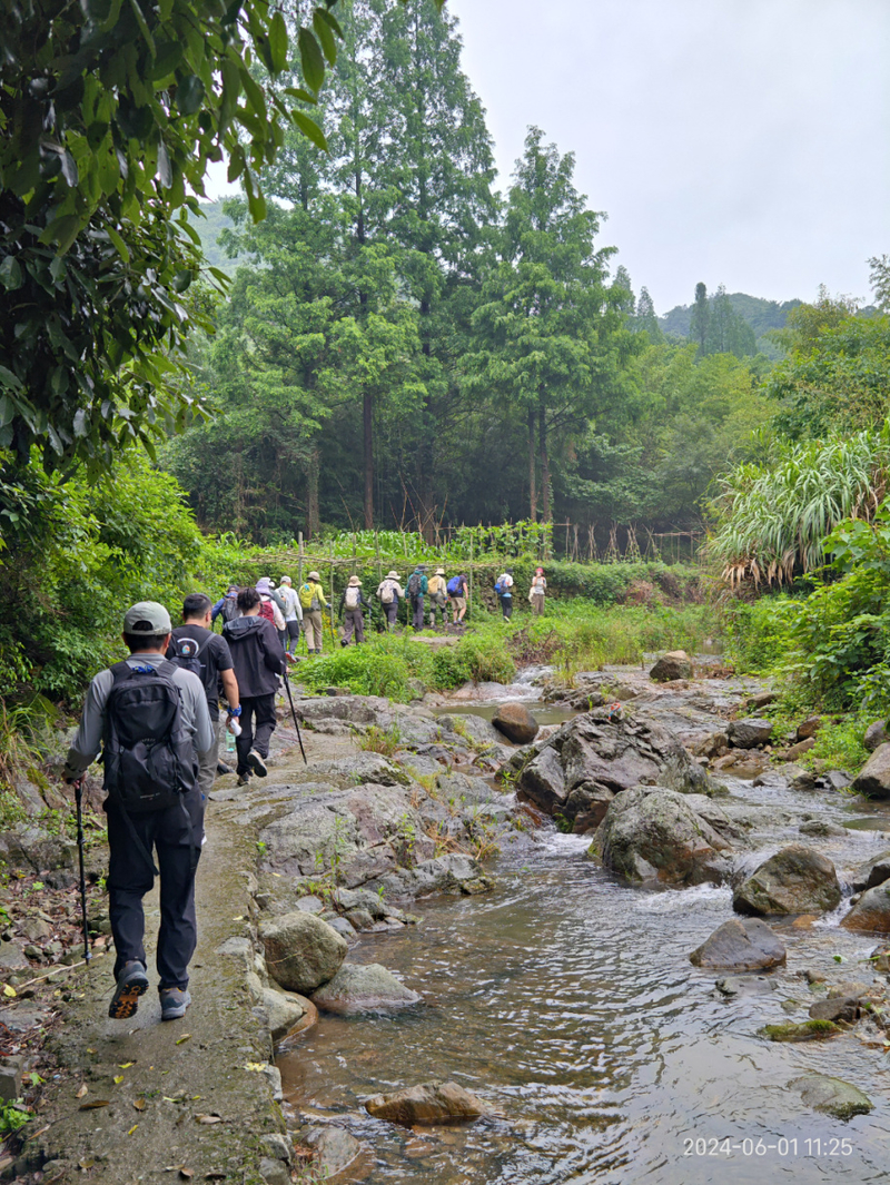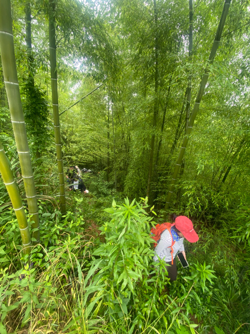 开始进山徒步,在村口就看到了鸡、鸭、鹅,原生态散养喂养,也是村里的一道风景线。后续沿着溪流山路进山,由于昨天当地下雨,导致山里的水汽比较大,穿梭行走,湿了一条条裤腿。踏过溪流,再来翻座竹林小山,我们经过第一个小爬坡,到达公路就可看到路边杨梅树,不过今年来的有点早,杨梅还是绿的,部分透点红。