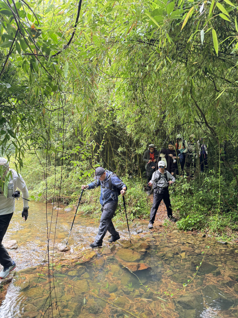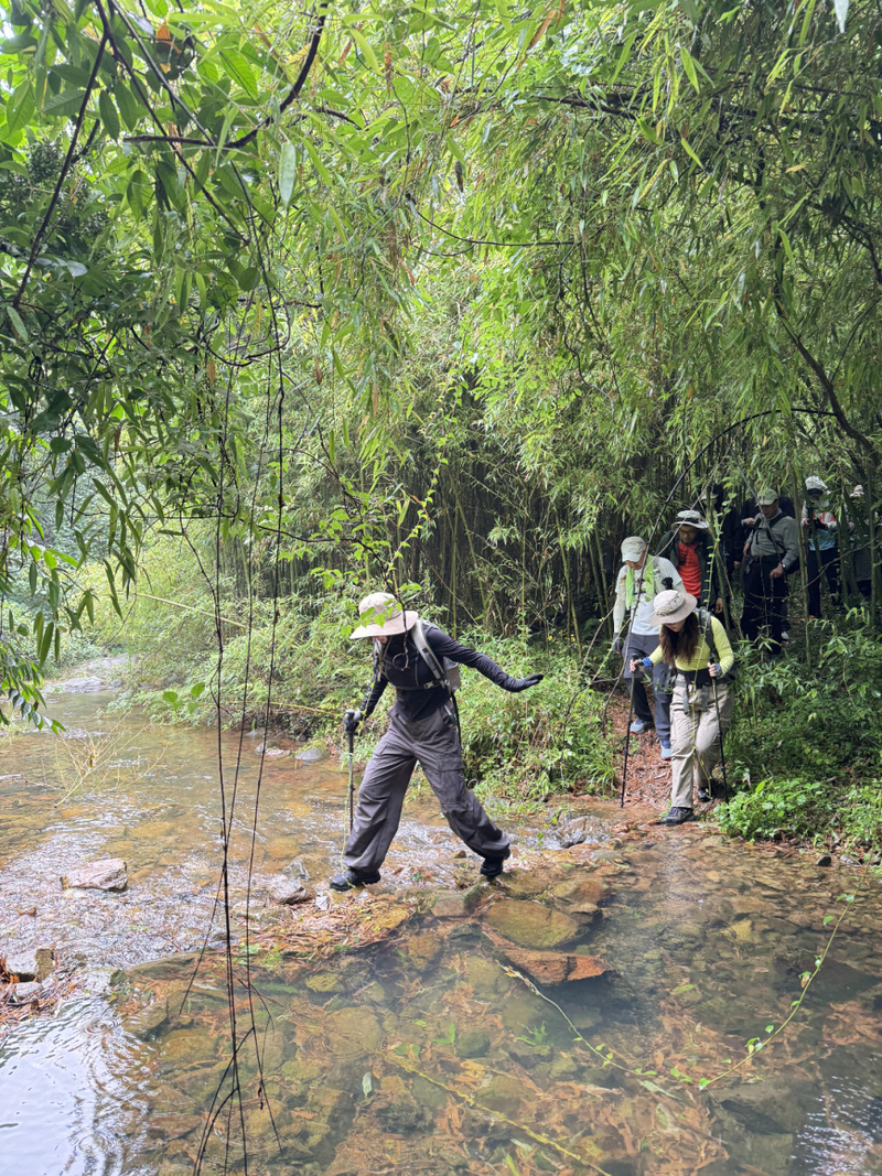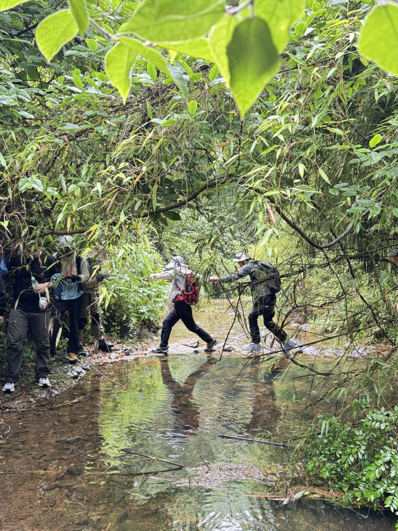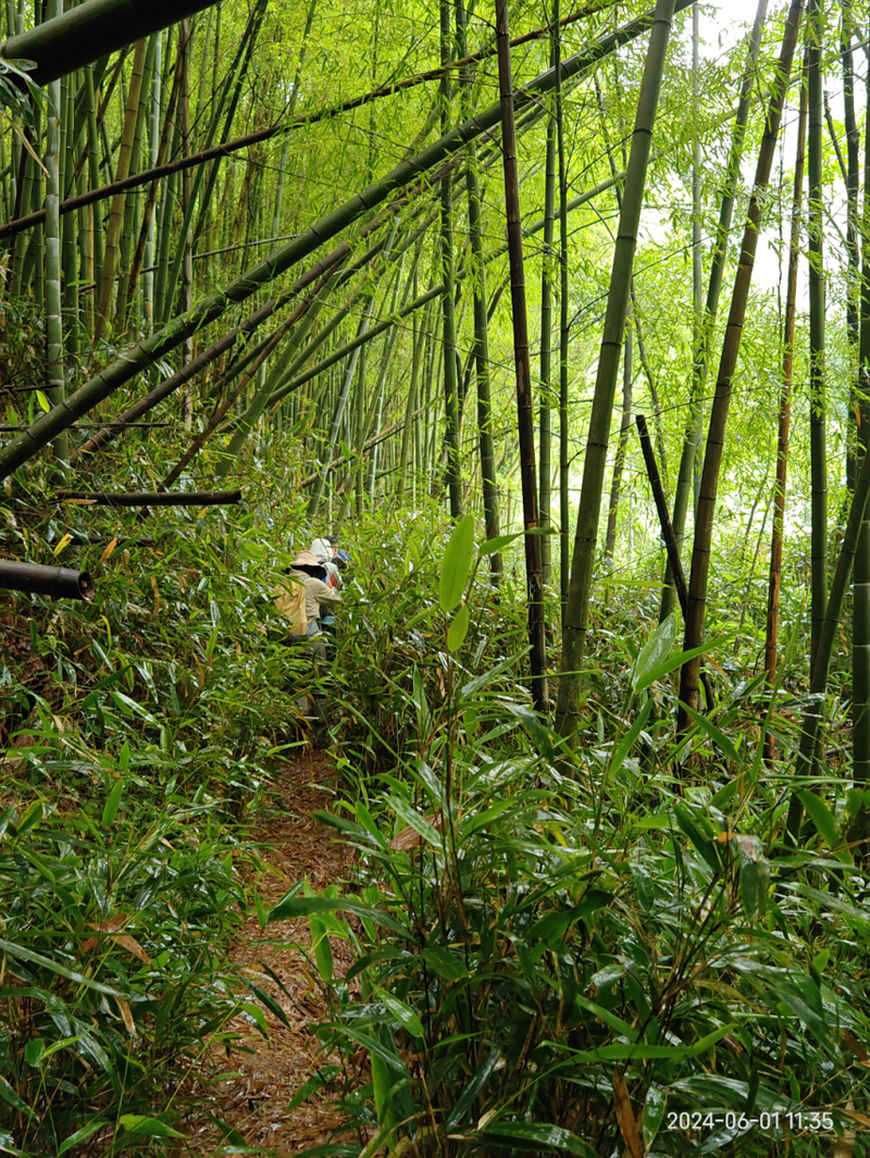 开始进山徒步,在村口就看到了鸡、鸭、鹅,原生态散养喂养,也是村里的一道风景线。后续沿着溪流山路进山,由于昨天当地下雨,导致山里的水汽比较大,穿梭行走,湿了一条条裤腿。踏过溪流,再来翻座竹林小山,我们经过第一个小爬坡,到达公路就可看到路边杨梅树,不过今年来的有点早,杨梅还是绿的,部分透点红。