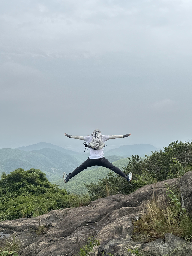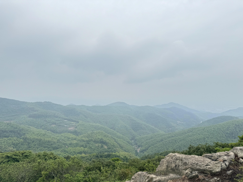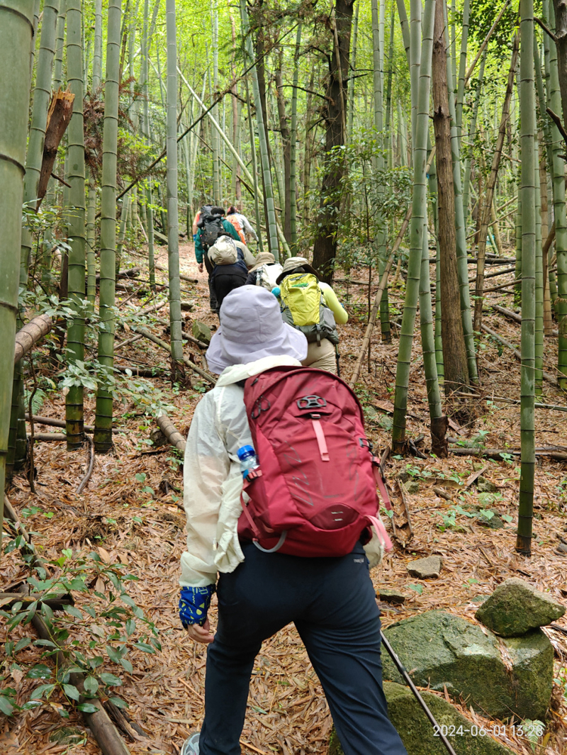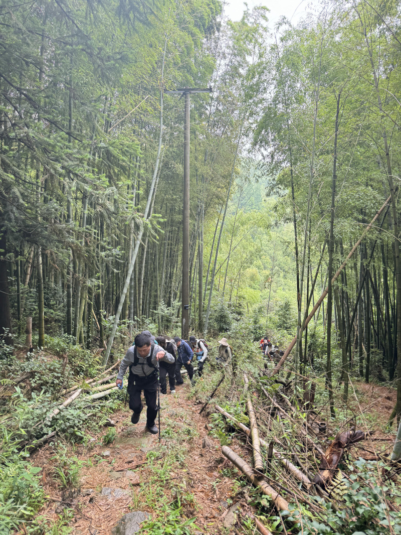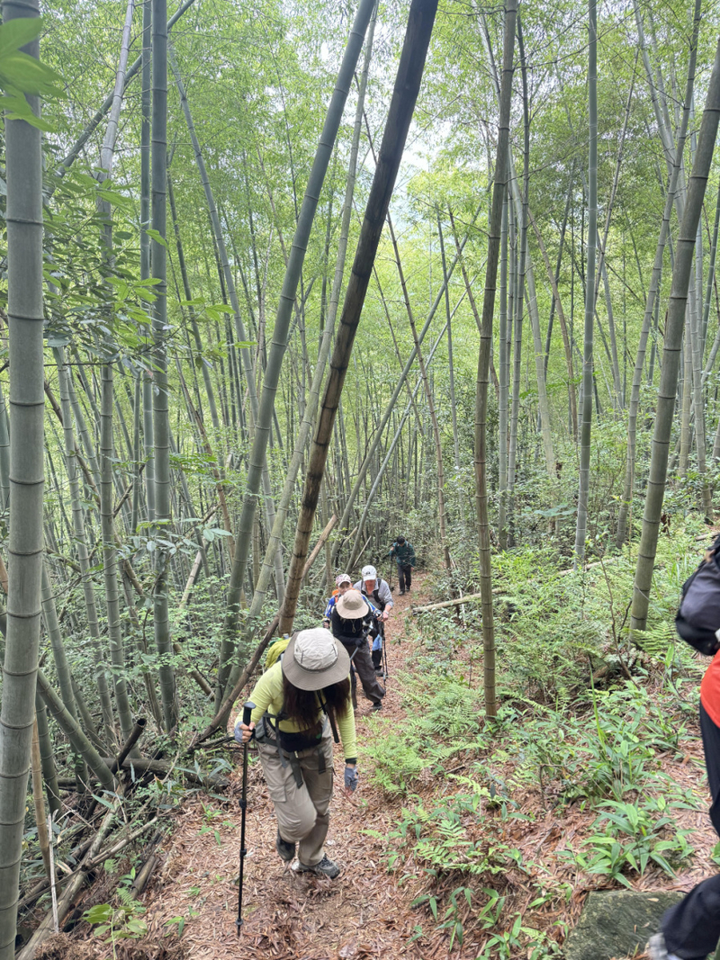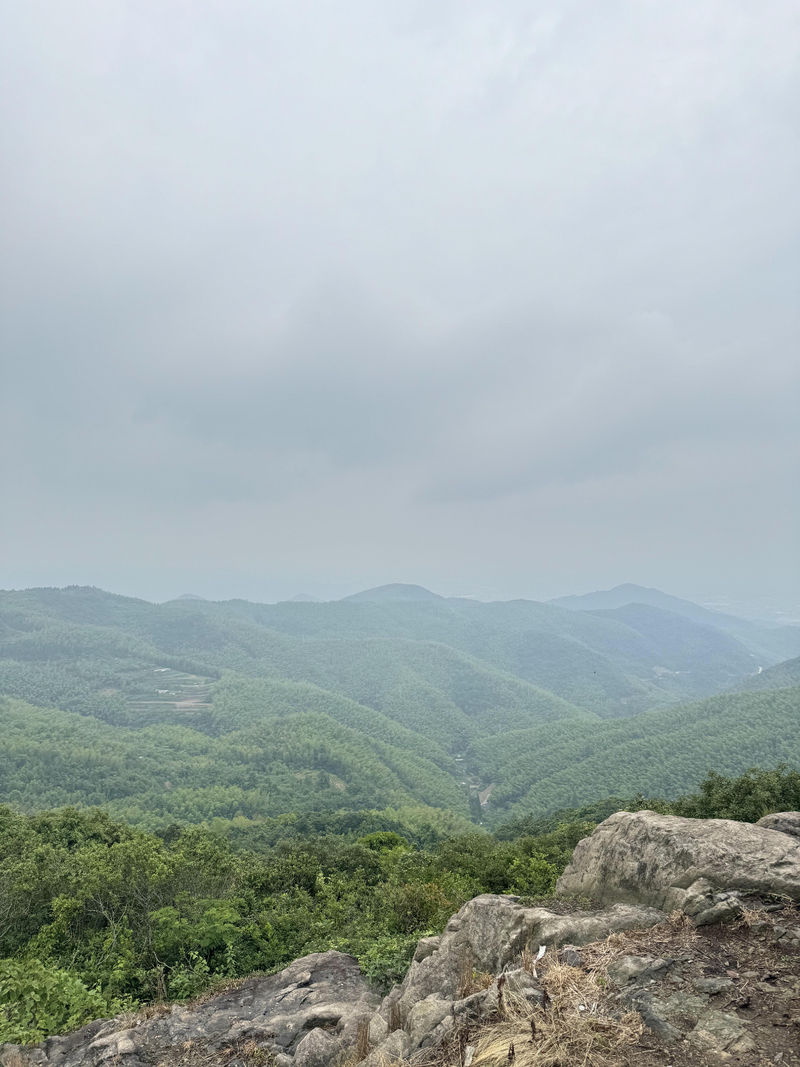 后面继续翻山越岭,走过杂树野路,到达蹋脑岗,蹋脑岗是慈溪市栲栳山脉的第一高峰,海拔446米。山顶以几块巨石为主,站于塌脑岗之上,一览众山小,大家也可在这休息调整一下。