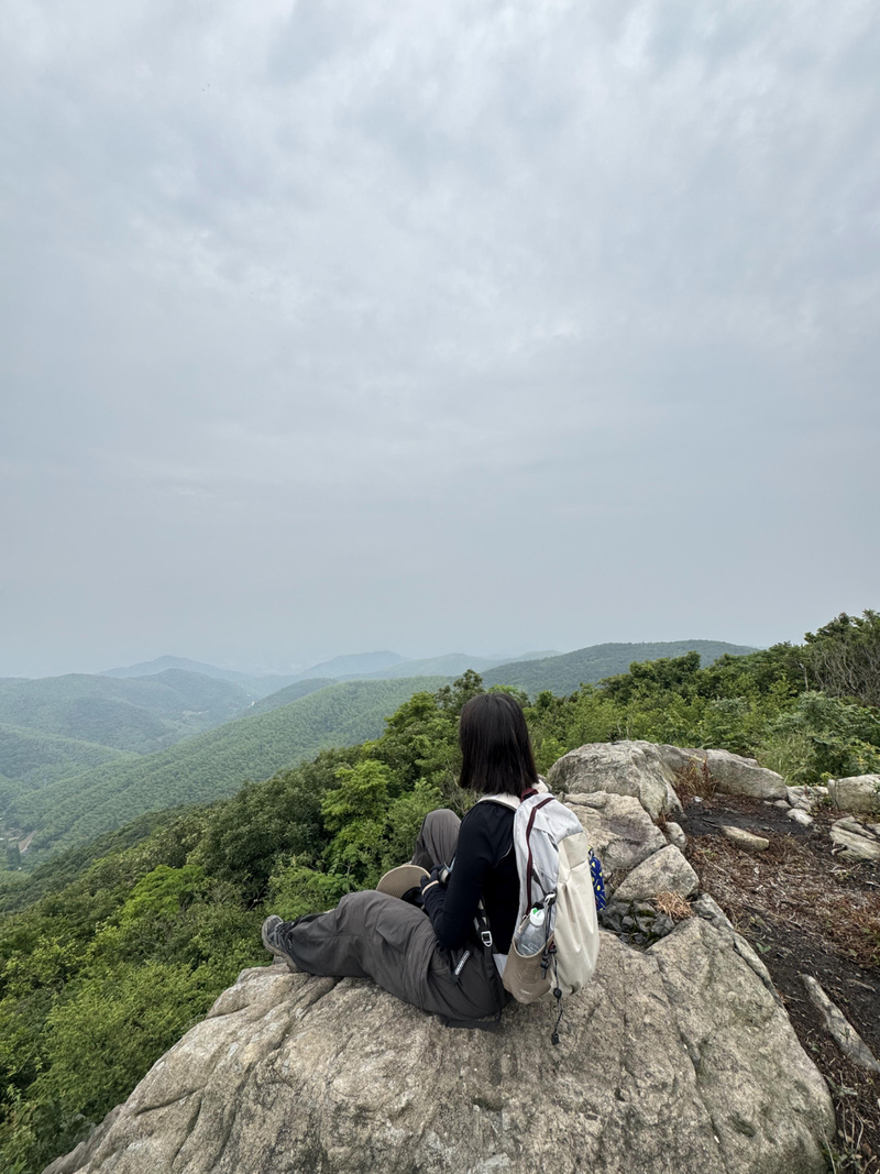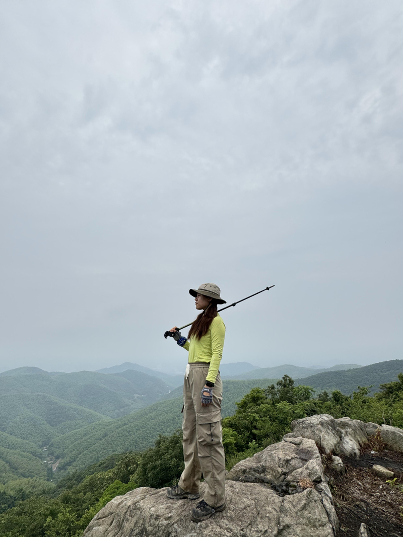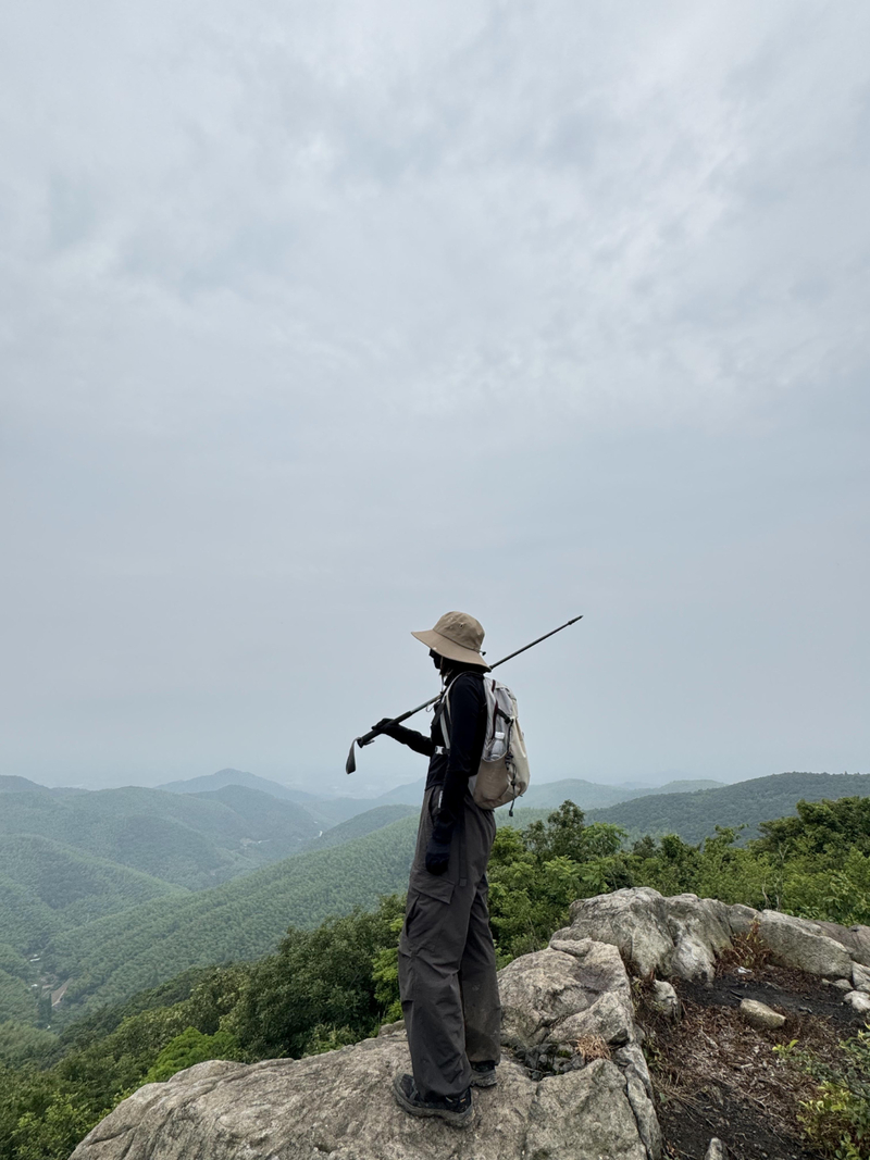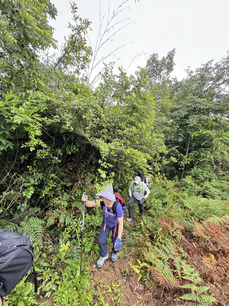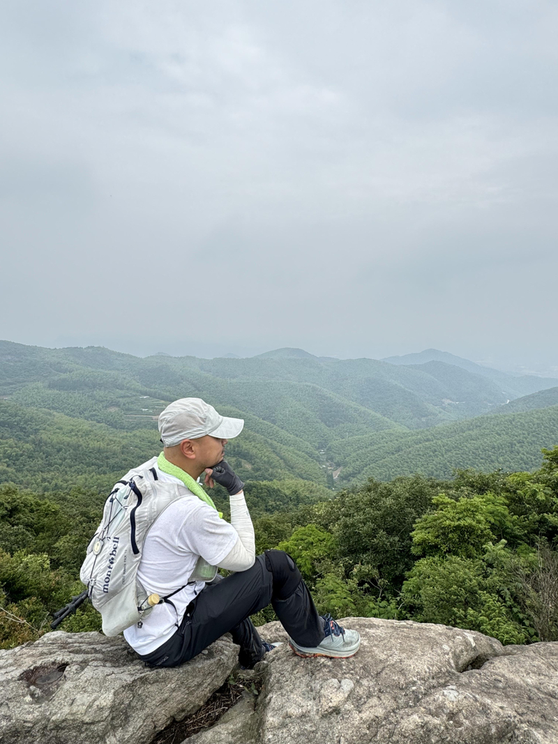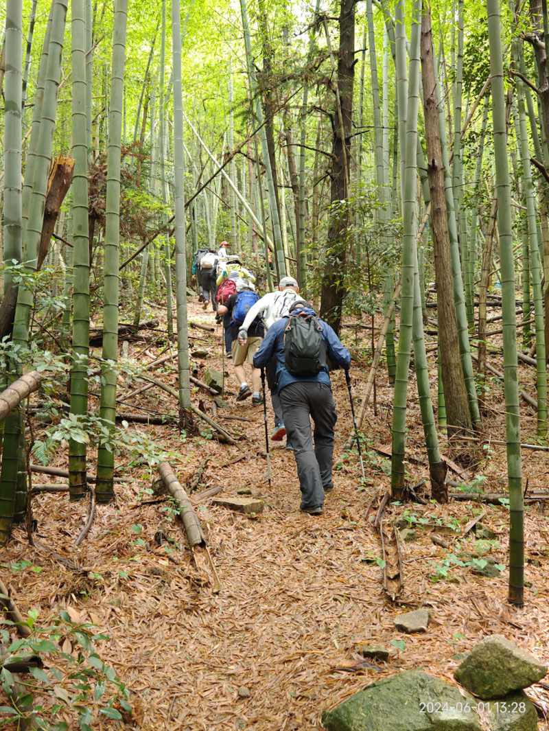 后面继续翻山越岭,走过杂树野路,到达蹋脑岗,蹋脑岗是慈溪市栲栳山脉的第一高峰,海拔446米。山顶以几块巨石为主,站于塌脑岗之上,一览众山小,大家也可在这休息调整一下。
