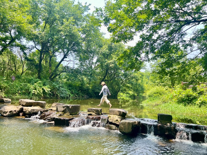 一路上,我们沉浸在郁郁葱葱的田园风光中,眼前是一幅幅恬静而美丽的画面,仿佛每一个瞬间都值得被定格和珍藏。到达龙山绿道,我们迫不及待地开始了我们的徒步探险。绿道蜿蜒曲折,郁郁葱葱,时而被浓密的树荫覆盖,时而则是一望无际的开阔草原。脚下的路面时而坎坷不平,时而柔软平缓,仿佛在引领我们走进大自然的怀抱。不过,这并非一帆风顺的旅程。6月的天气异常炎热,炎热的阳光像是无情的激流,每一步都让人感到滚烫。我们小心翼翼地前行,不时停下来休息,补充水分,以免中暑。