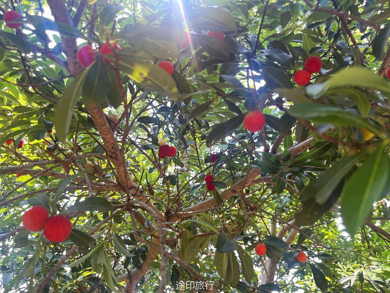 正当我们觉得热浪难耐之时,眼前突然一片红艳艳的杨梅树映入眼帘。杨梅树下,果实累累,晶莹剔透的果实在绿叶的衬托下显得格外诱人。我们忍不住停下来,一颗颗果实顺手摘下,清甜的汁液在口中四溢,顿时让人觉得凉爽宜人起来。杨梅成了我们旅程中的一大亮点,不仅解渴,更是我们探险的甜蜜奖赏。我们将口袋里装满了这些美味的果实,仿佛带着大自然的馈赠继续我们的旅途。