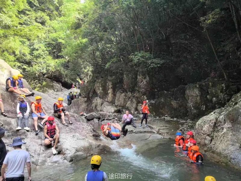 蝴蝶谷乃户外徒步溯溪的经典线路之一,整个溯溪段毗邻天目古道,溪流伴着古道,在峡谷中缓缓而下,溪水喘喘,碧潭清澈。即使在炎热的夏日,趟着冰澈的山泉水,在狭长的山谷中溯溪而上,山谷两侧绿植繁茂,炙热的阳光犹如顽童般随着尔之轻快步伐,时而探出头来窥视一番,提醒着早已把炙热酷暑抛之脑后的你:此时此刻依旧是高温剩下。一路逆流而上,或攀爬、或漂浮、或潜泳、或畅游,伴随着水花四溅欢腾笑闹,无论男女老少,无论是否相识,可结盟一战,亦可临阵倒戈,一个字“干”就玩了......