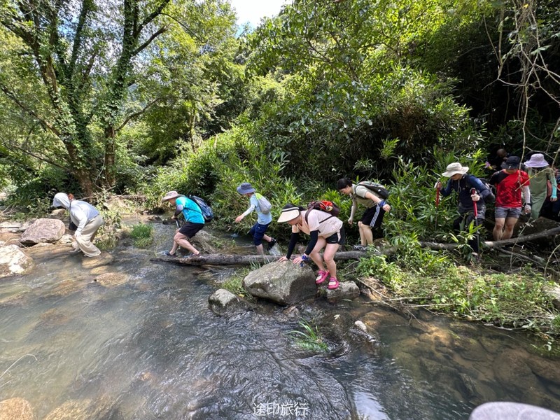 我们这次来到了奉化石井村,来看石井龙潭和溯溪。一离开村子就看到了石井龙潭瀑布。接下来开始溯溪,但水有点大,所以我们开始走了一段山路,然后回到了溪流。