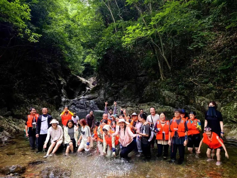 自带结界每每弹开台风的魔都遇上连续的35℃高温,不找一个避暑圣地去躲一躲酷暑,怎对得起一周的辛劳付出呢?跟上途印的步伐,追逐台风路径,一路向西来到浙江杭州临安的溯溪圣地蝴蝶谷。远山上的乌云盖顶,不免让人担心会不会突降大雨,但眼前的炙热已挡不住下水的冲动。一脚迈入清澈的溪流中,那冰冰凉凉的感觉,瞬间由脚底盘升,那一刹那全身自下而上的的冰火两重天,让人不由的一激灵。随着人流蹒跚前行,冰凉感从脚踝至膝盖、到腰间直至一个猛子扎入深潭。恍惚中疑似盛夏时光是种错觉。攀上巨石,一手触及晒得滚烫的石面,才将意识又拉回到酷暑中...一路前行,或在水中蹒跚挪步;或在深潭畅游而过;或在浅滩信步前行;或在巨石四肢攀爬