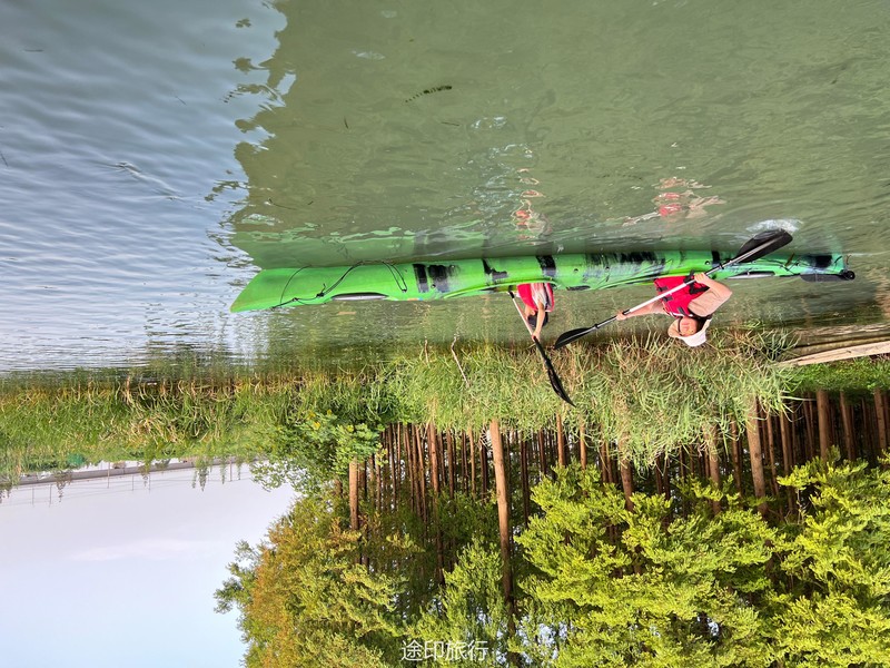 湖面上的划船体验充满了细节的乐趣。例如,当我们划过湖中的小岛时,湖水清澈见底,能看到水草在湖底摇曳;偶尔有几只水鸟从湖面上飞过,留下淡淡的涟漪。划船的过程中,我们还注意到了湖中的浮标和指示标识,这些小细节确保了我们能安全地在湖面上畅游。湖上的每一刻都充满了笑声和兴奋。