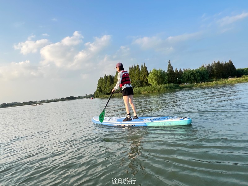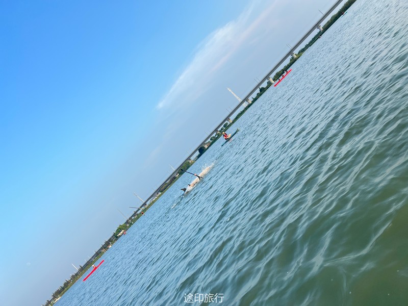季夏的午后天空湛蓝,空气中带着初秋的清新。我们今天的目的地是位于青浦区的淀山湖。尽管淀山湖距离上海市区并不算远,但我们都期待着这一天能带给我们不同的体验和难忘的回忆。从上海到淀山湖的车程大约一个半小时,沿途风景如画。车窗外,是一片片绿意盎然的田野,偶尔穿插着古朴的小村庄。我们一路谈笑风生,路上还不时停车拍照,享受这段宁静而美好的旅程。湖边的风景让人心旷神怡。湖水碧蓝透明,湖面宽广而平静,周围被青山环抱,形成了一幅美丽的自然画卷。我们在湖边的小木屋租下了划船所需的工具,大家开始分配任务,准备享受即将开始的水上冒险。