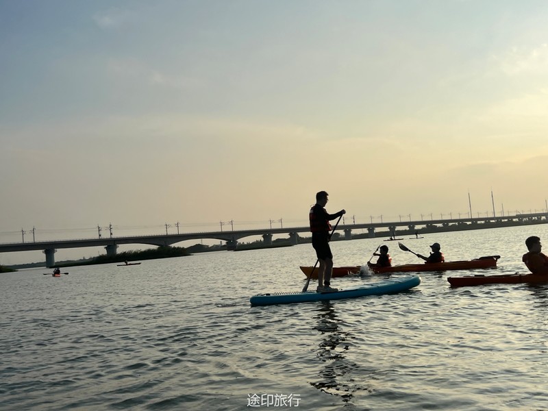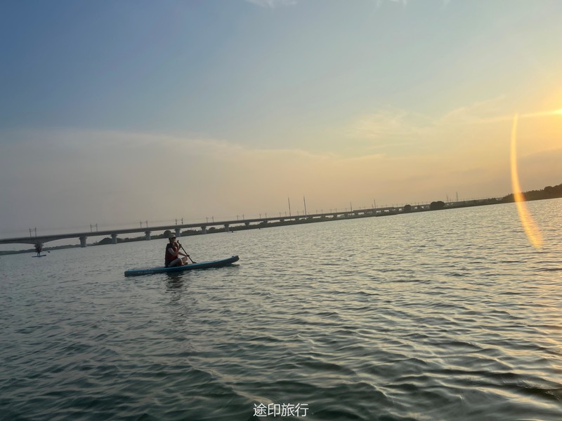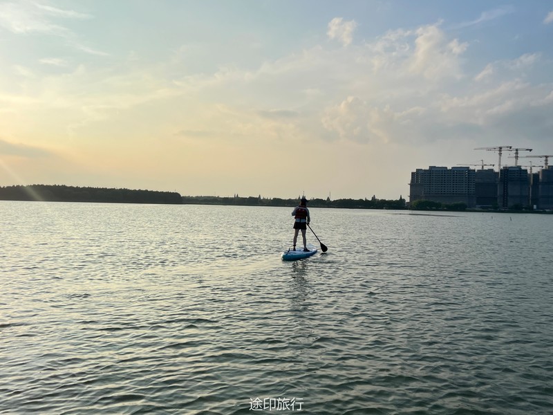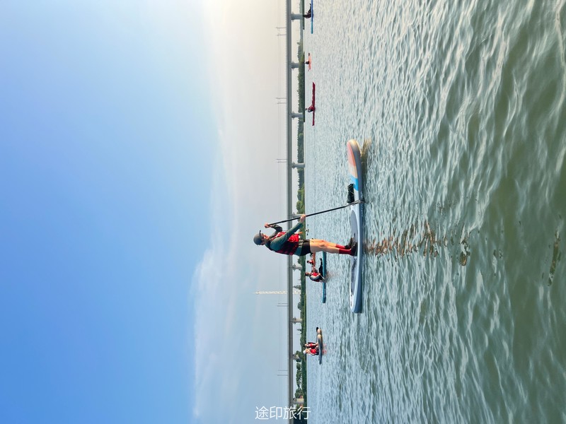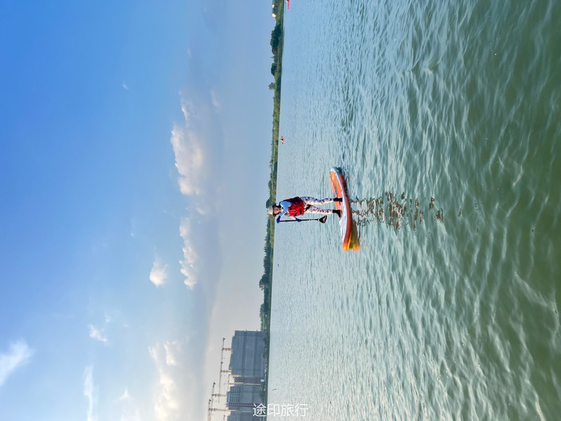 我选择了试试浆板,这是许多人在湖上休闲娱乐的热门选择。站在浆板上,我发现保持平衡需要一点技巧,但一旦掌握了感觉,就能在湖面上轻松滑行。划动浆板时,湖水在板下泛起层层涟漪,风拂过脸庞,带来阵阵凉意。与好友们一同在湖上游荡,交流着彼此的心情,感受着大自然的宁静和美丽,这种感觉无比惬意。一些伙伴选择了划独木舟。独木舟相比浆板更具稳定性,也更适合团队合作。划动独木舟的桨时,每一次推动都能感受到湖水的反应。大家在湖面上穿行,有的友人还尝试进行一些简单的竞速比赛,欢乐的笑声和加油声在湖面上回荡。独木舟不仅仅是一种划船工具,更是让我们在水上亲密接触自然的载体。
