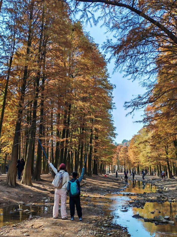 这是个由两个路线组成的徒步线路,一个是石井水库,位于浙江省绍兴市上虞区上古镇龙古村的石井自然村,水库周边群山环抱,植被破坏少,很有原生态的味道。加上附近人烟稀少,湖水由山泉溪流汇成,清澈碧蓝,织就一道独特的风景线。水库尽头的杉树林是上虞区内最美的红杉林,每年这个时候,树木颜色逐渐变红变黄,呈现出五彩斑斓,美轮美奂的景色,另一条梅坞古道也在上虞区,车程间隔半小时左右,是一条古老的徒步路线全长7公里左右,沿途风光秀丽,溪水潺潺,竹林茂密,给人一种进入原始丛林中的幽静之感。‌古道沿途有补给点,可以购买饮料、零食等补给品。难度较低,适合休闲徒步。在梅坞古道的半山腰有一个澄湖水,被誉为“上虞小九寨”,景色优美,值得一游。一日两线也是相当悠闲和惬意的,是个不错的观景徒步路线