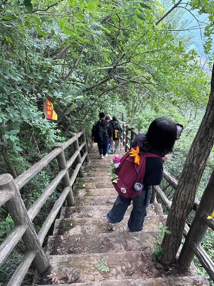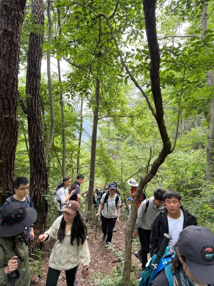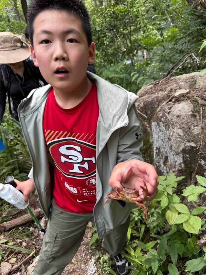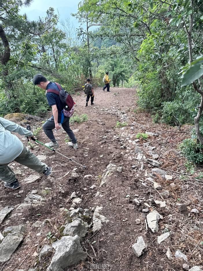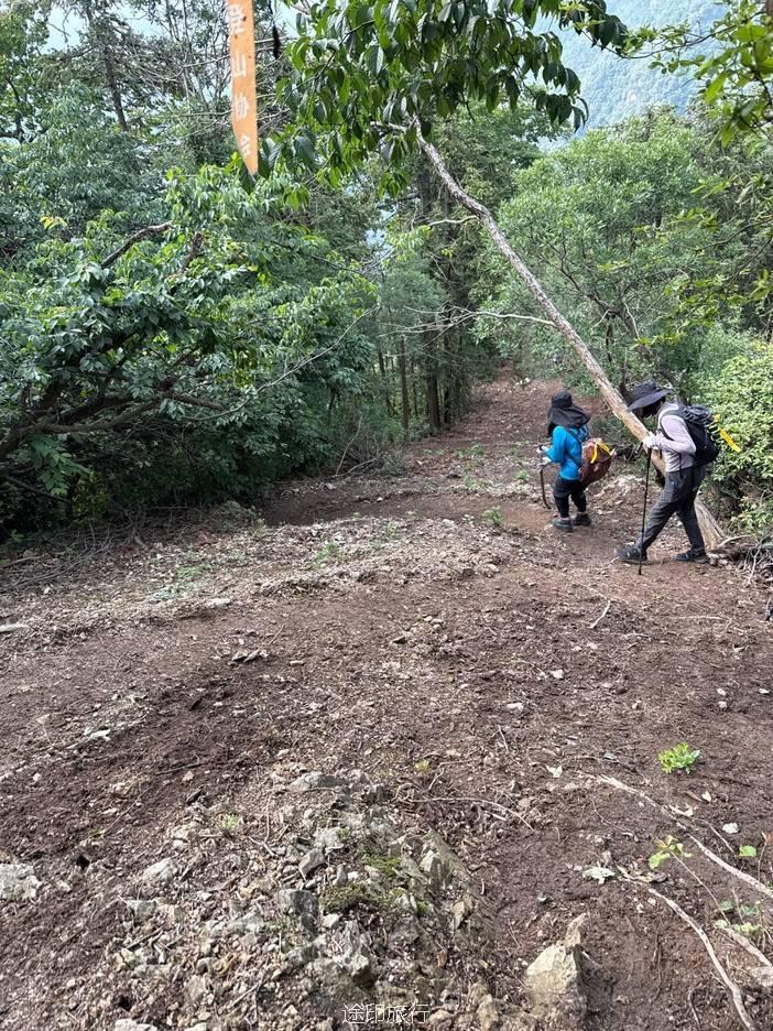 开始遇到了一个小难题,因为前两天下雨,溪水涨了不少,原本的石头被水淹没了不少。大家就绕了一点道。顺利通过,接下来是艰苦的爬山路线。一路步道,步道边是山涧。虽然有点累。但景色宜人。顺利到达了午饭点。