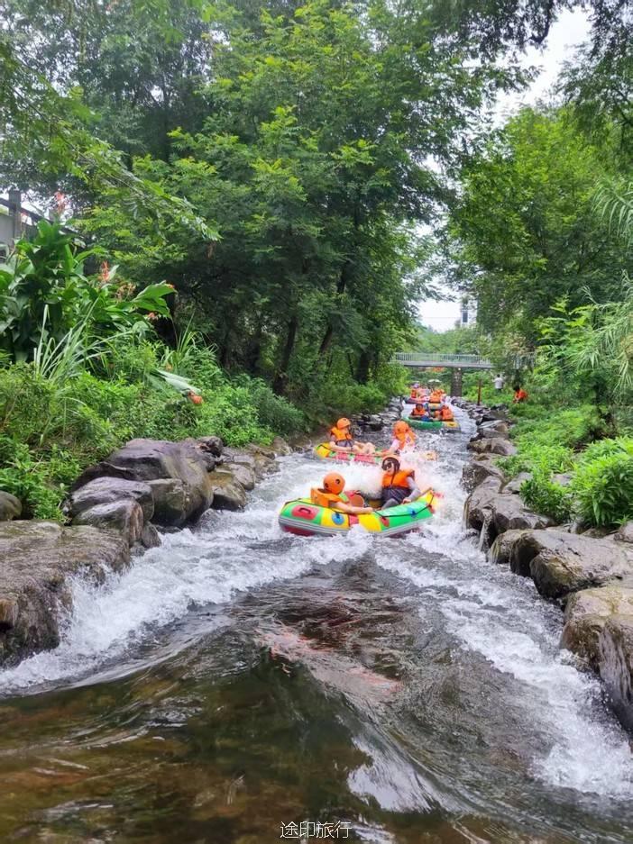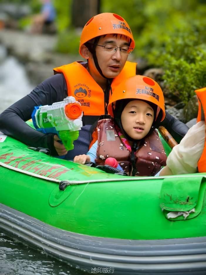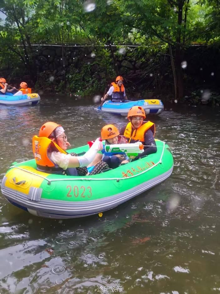 这次途印本来安排的是懒人漂流,但出发后懒人基地负责人才反馈水太小。与所有小伙伴商议后更换成天目山漂流。漂流可谓是夏天一大乐事,坐在漂流漂流艇上,沿着溪流向下,是不是一个陡坡,大家在感受水流的激情时,还要防备小伙伴们的“偷袭”,毕竟大家的武器可是提前准备好了的。漂流了1个多小时,但感觉很快就过去了。