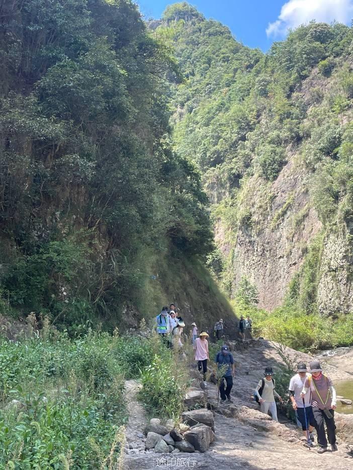 前半程基本上没有什么爬升,走路过桥看瀑布,还能涉水清凉一下。